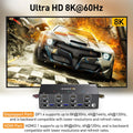 【Ultra HD 8k Visual Enjoyment】8K HDMI displayport kvm switch support high resolution of 8K@60Hz, please use 8K HDMI cable and 8K DP cable to achive 8k@60Hz resolution. To achieve 8k resolution please make sure that your monitor, computer, cables are all support 8K.