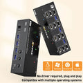 【External 12V Power Port & Power Switch】The 2 computers 3 monitors kvm switch is equipped with a 12V power port for high power USB devices and a separate power switch. Simply press the power switch to restart the 3 monitor KVM when signal re-recognition is needed, eliminating the hassle of repetitive plug and unplug actions