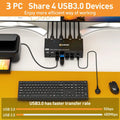 This 2 Displayport+HDMI triple monitor KVM switch is perfect for 3 computers or laptops to share 3 monitors and 4 USB 3.0 devices.
