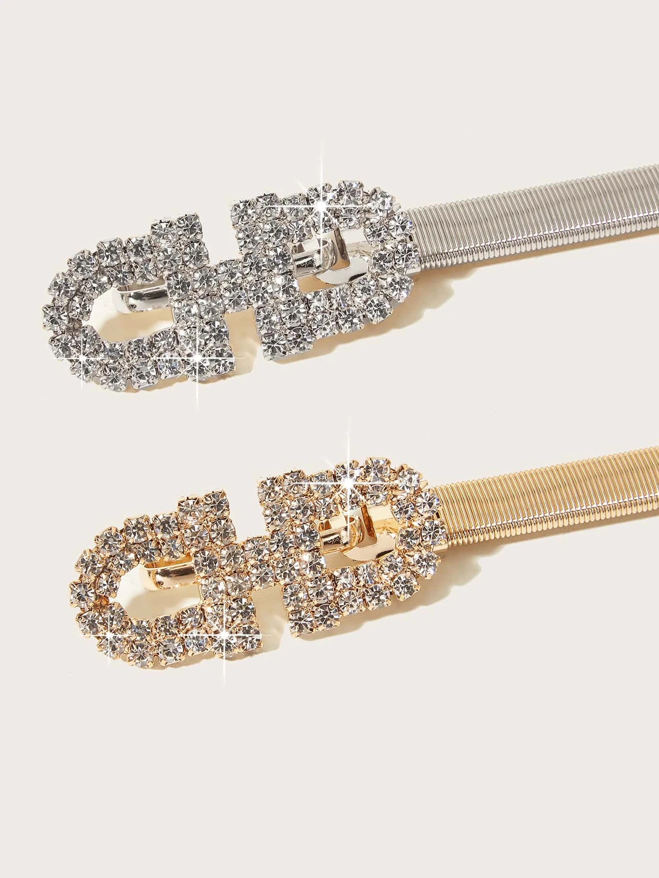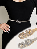Ladies Bling Bling Sparkling Rhinestone Buckle Decoration Metal Spring Waist Seal Elegant and Sexy Style Dress Accessories