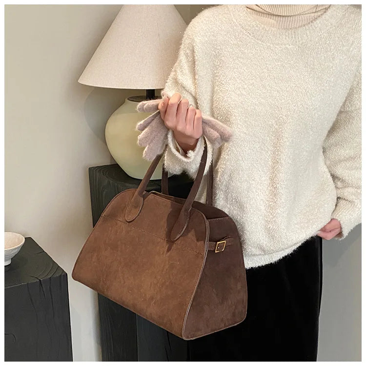 Ladies' Top-handle Bag High-end Feel Niche Design Large Capacity Vintage Commute Handbag For Autumn/winter Season