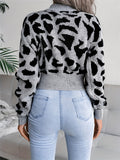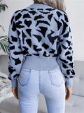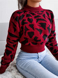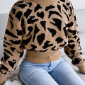 Leopard Print Crop Sweater, Casual Crew Neck Long Sleeve Sweater, Casual Tops For Fall & Winter, Women's Clothing