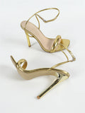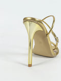 Liyke 2025 Summer Sexy Gold High Heels Gladiator Sandals Women Fashion Square Toe Ankle Buckle Strap Stiletto Party Dress Shoes