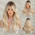 Long Ombre Blonde Hair Wig Natural Looking Layered Wavy Wigs For Women Heat Resistant Hair Wig Cosplay Party Synthetic Wig