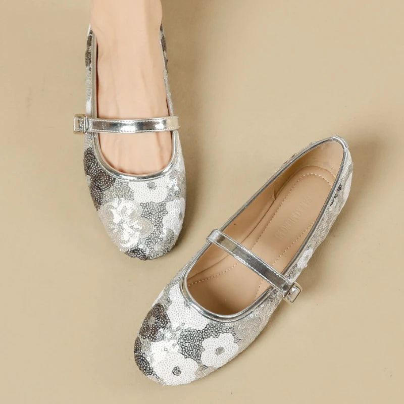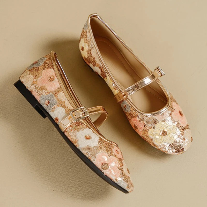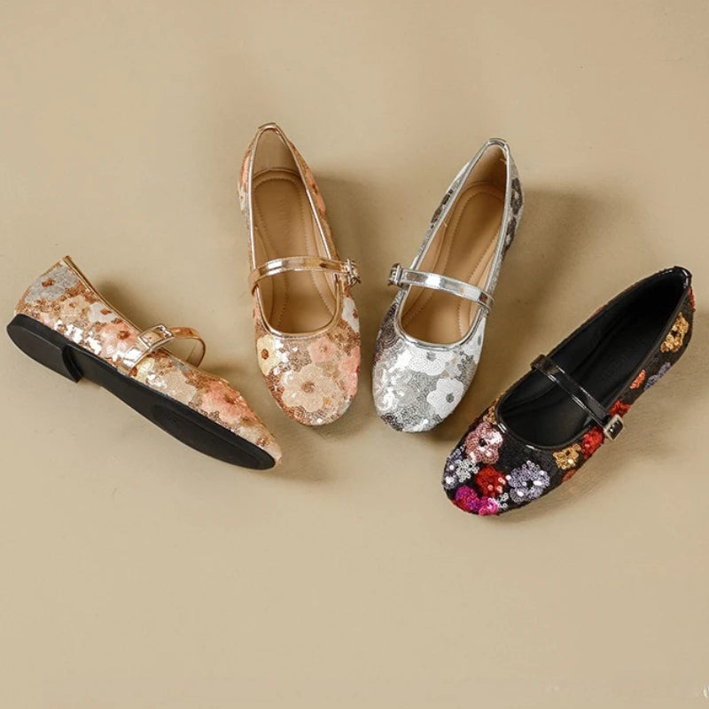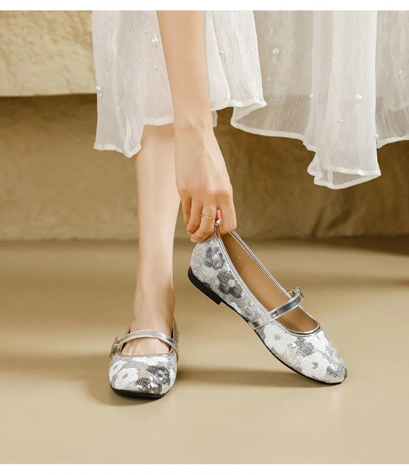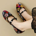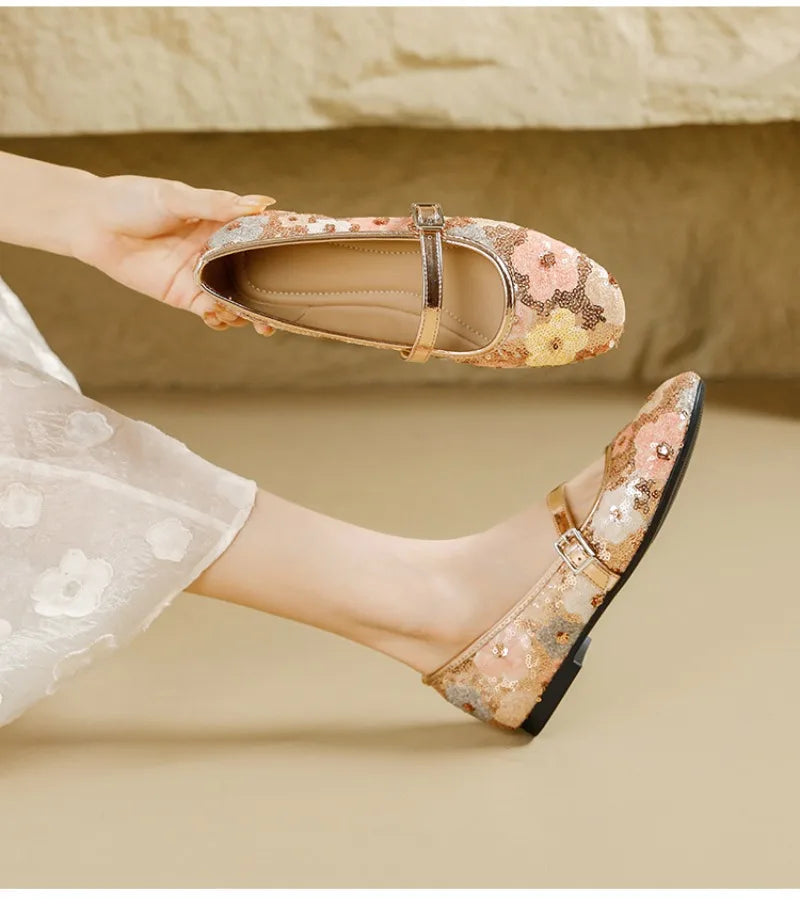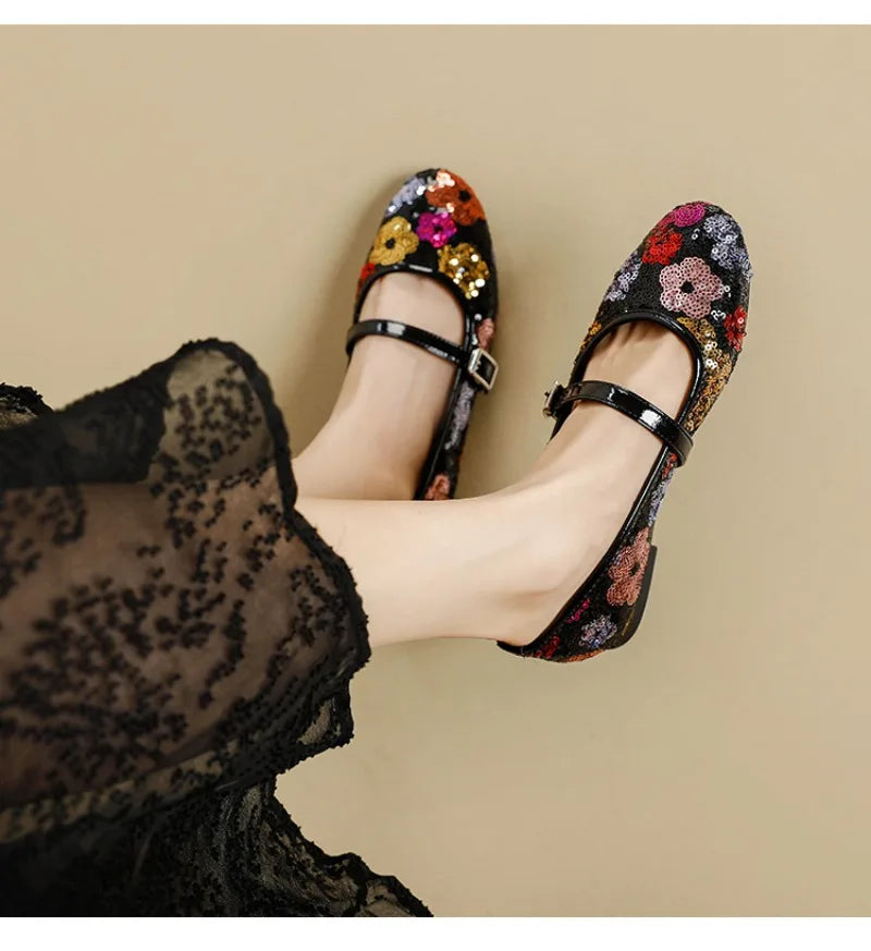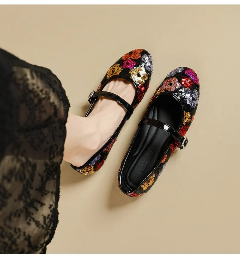 Luxury Bling Ballet Flats Women Round Toe Colorful Floral Buckle Design Mary Jane Shoes Elegant Party Shoes Comfort Flat Sandals