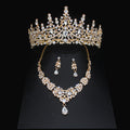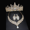 Luxury Crystal Wedding Bridal Jewelry Sets Women/Girl Gold Color Tiara/Crown Earrings Choker Necklace Bride Jewelry Set