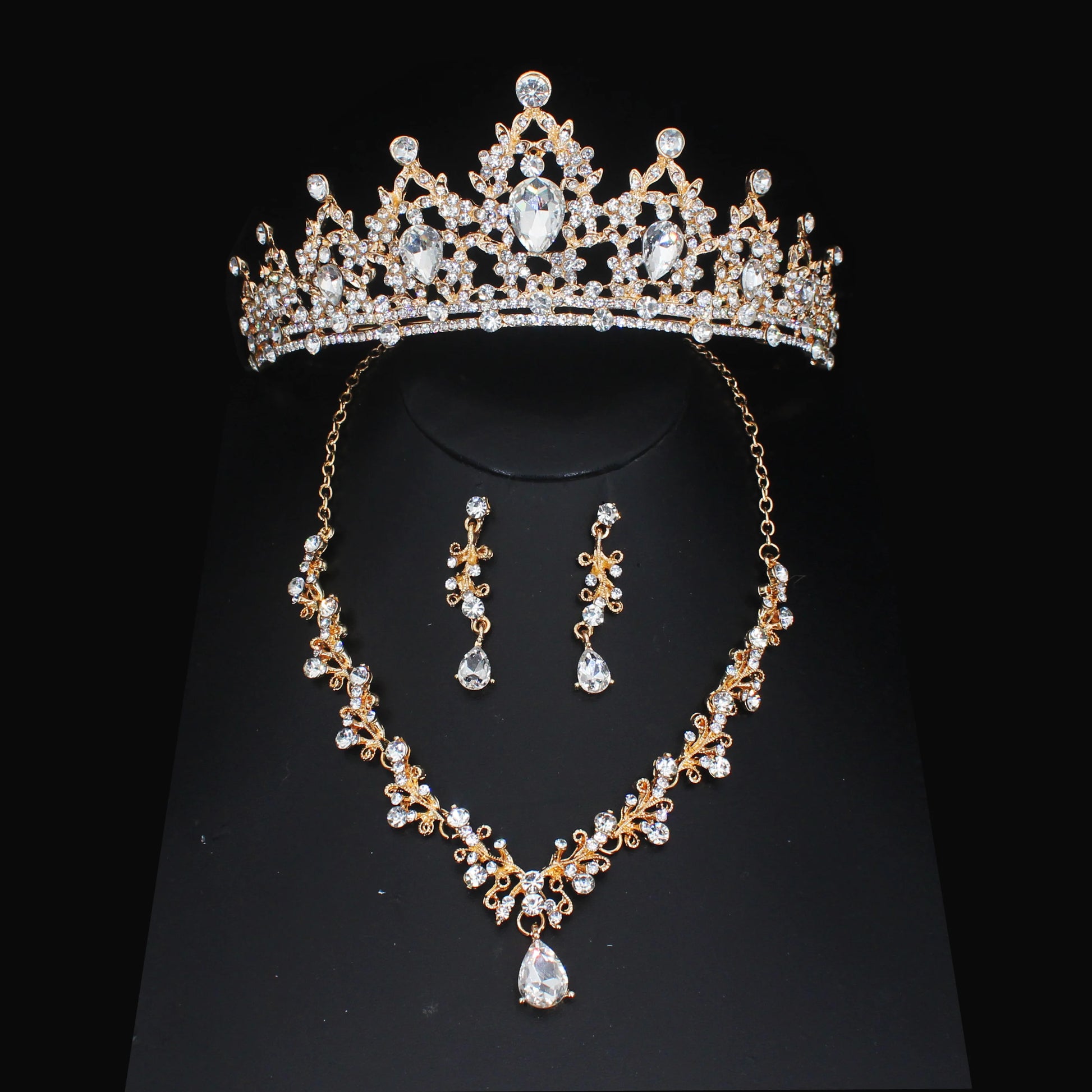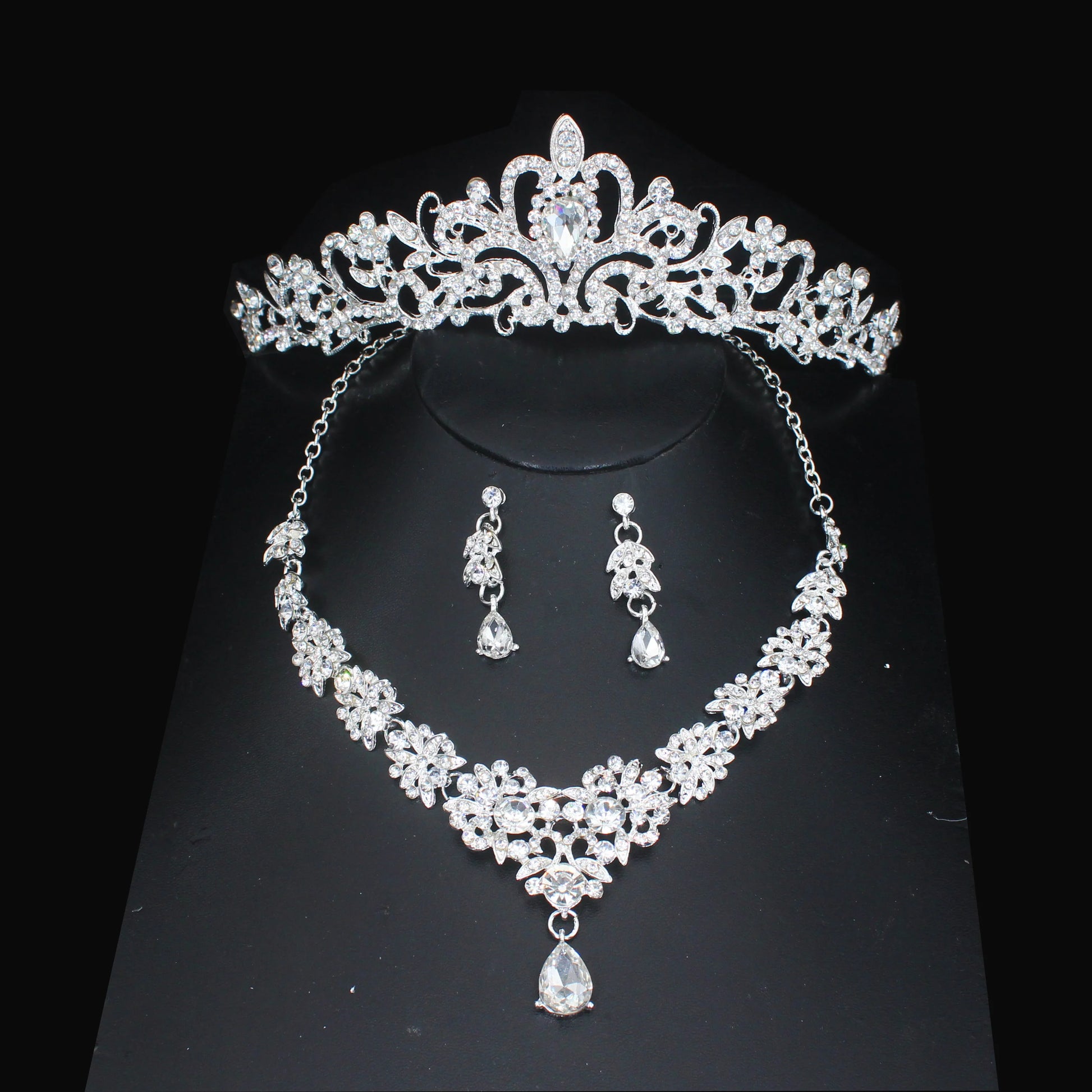 High Quality Fashion Crystal Wedding Bridal Jewelry Sets Women Bride Tiara Crowns Earring Necklace Wedding Jewelry Accessories