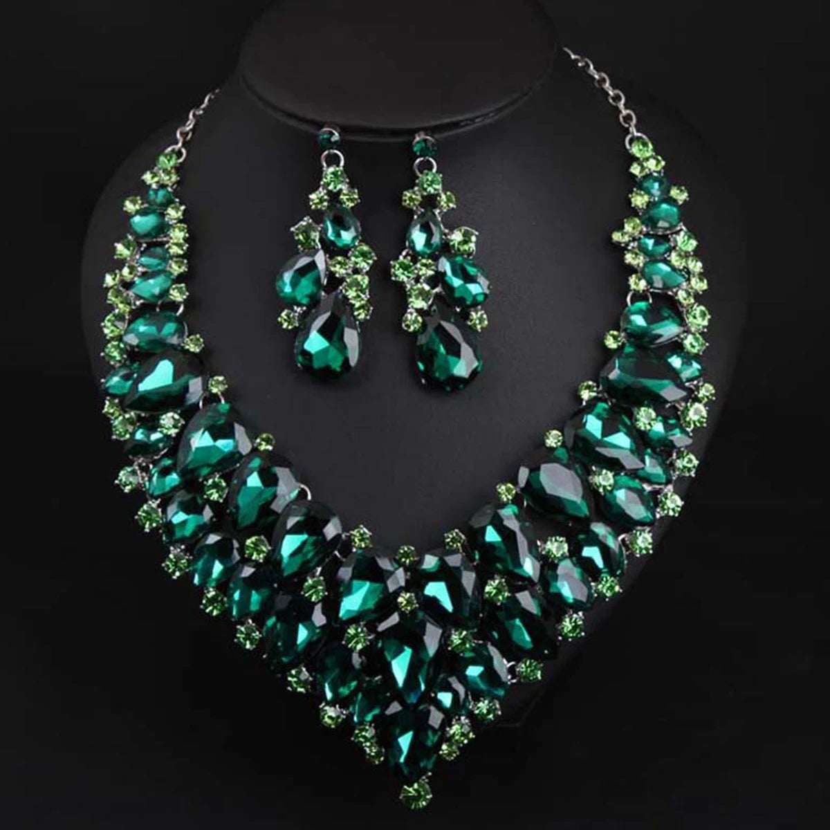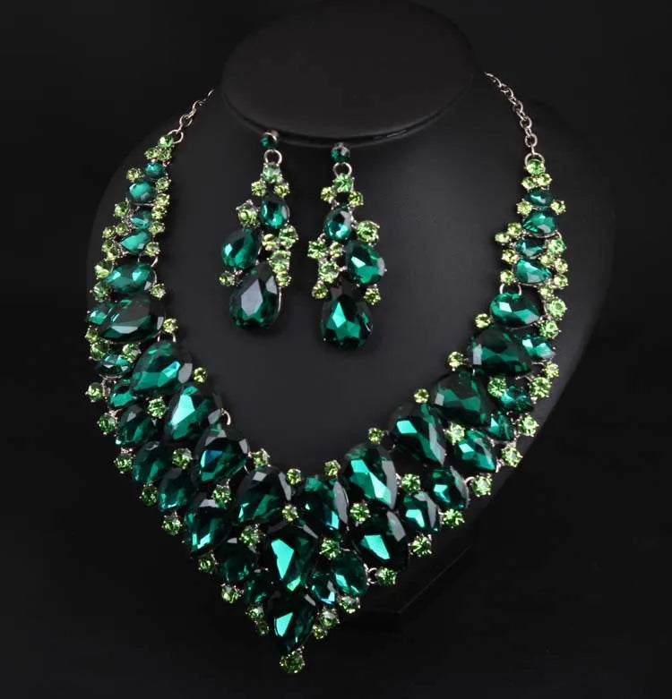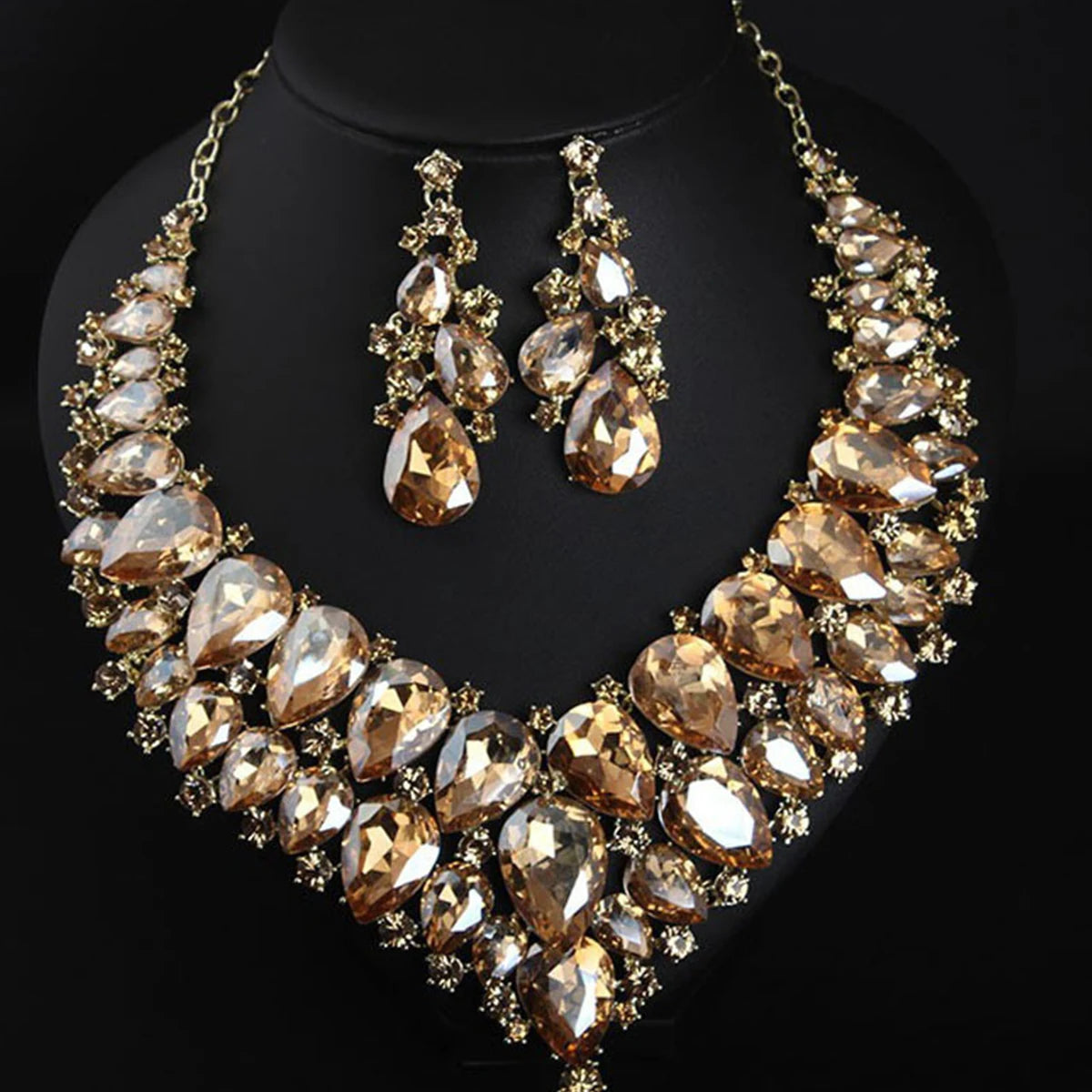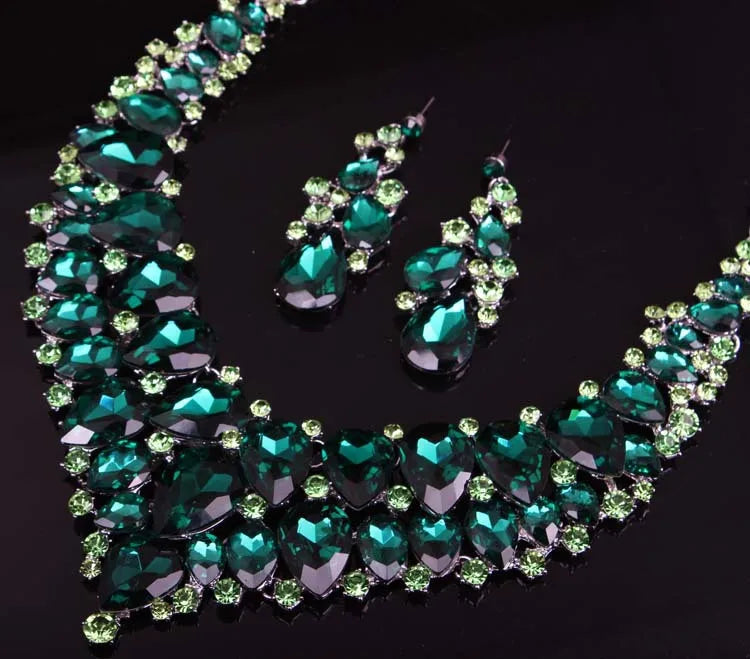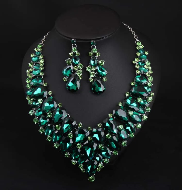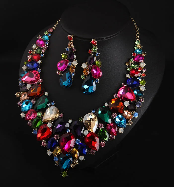 Luxury Super Shiny Colored Gems Crystal Jewelry Set Trendy Necklace Earring Women Wedding Bridesmaid Accessories Gift Wholesale
