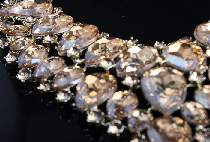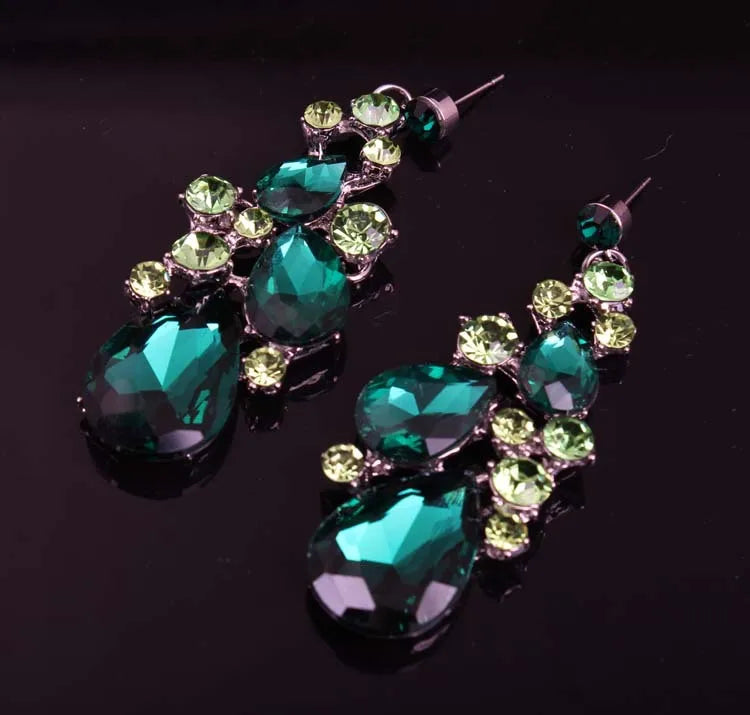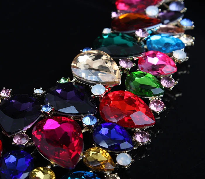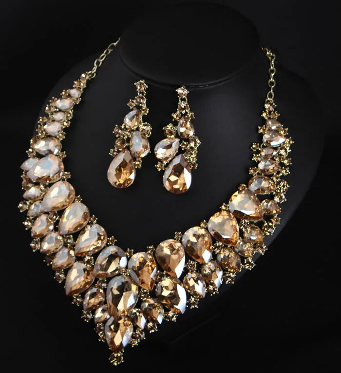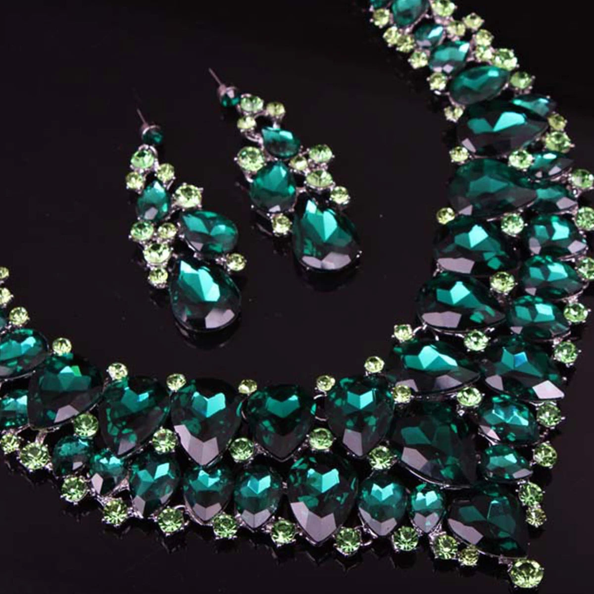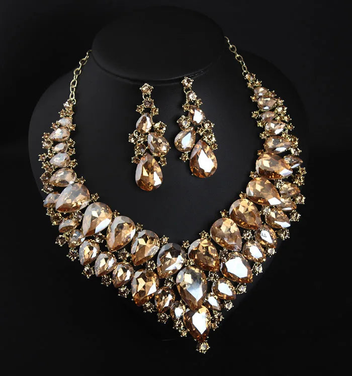 Luxury Super Shiny Colored Gems Crystal Jewelry Set Trendy Necklace Earring Women Wedding Bridesmaid Accessories Gift Wholesale