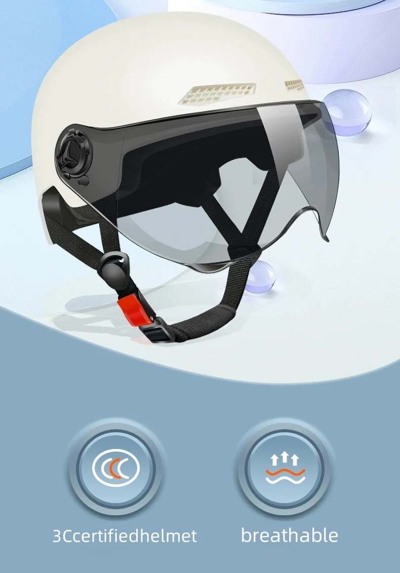 Male and female motorcycle helmet bicycle open face 3C helmet glasses sun visor lightweight scooter retro helmet with goggles