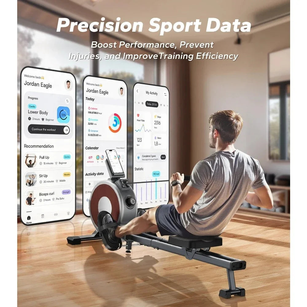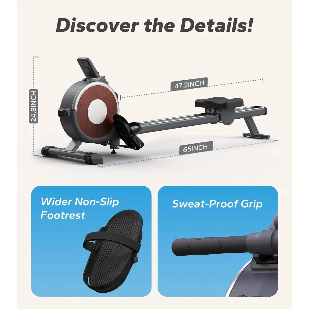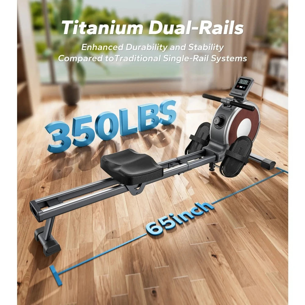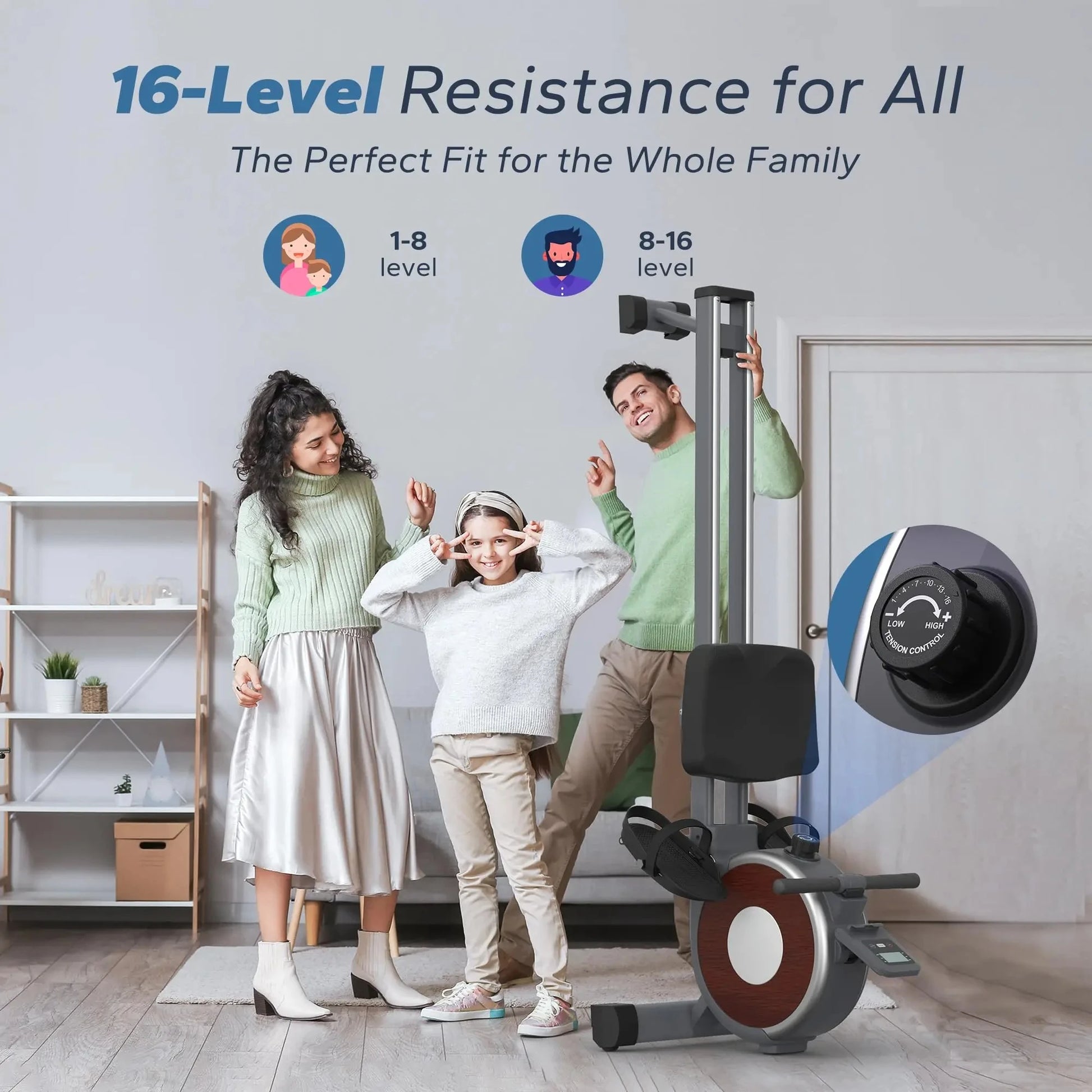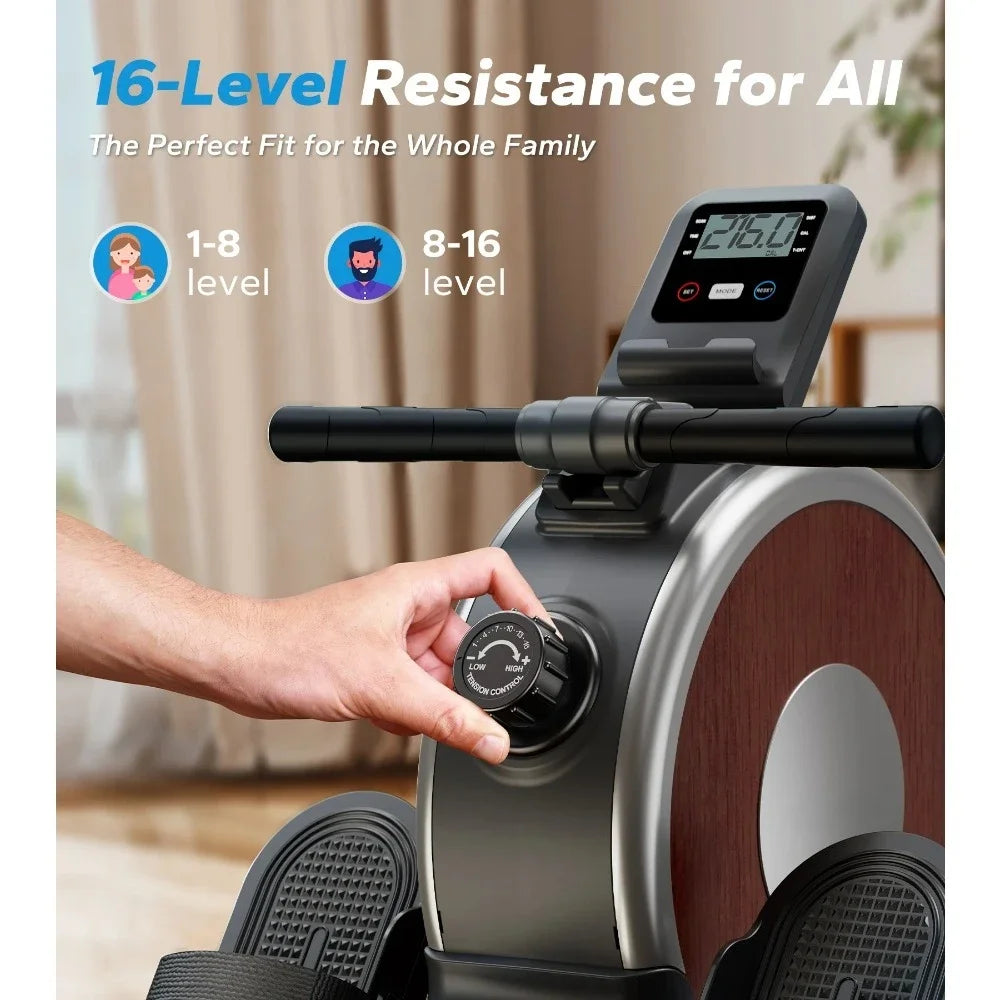 Rowing Machine, Magnetic Rower Machine for Home, 16 Levels of Quiet Resistance, Dual Slide Rail with Max 350lb Weight Capacity, App Compatible