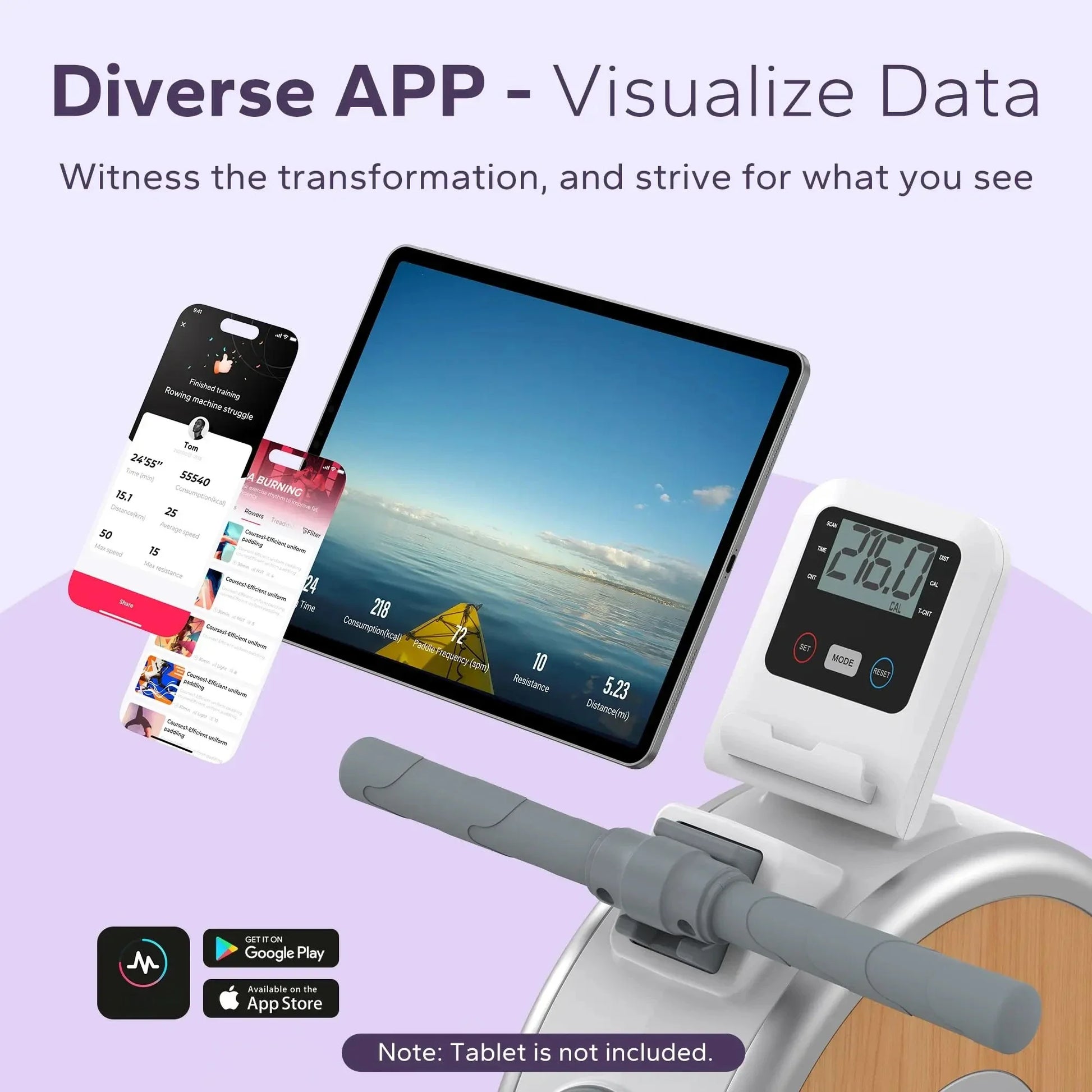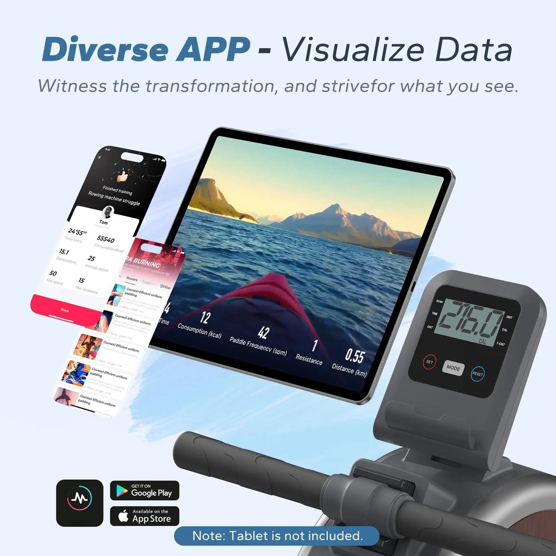FREE APP: Our App offers various FREE courses and programmed exercises for you, Taking the courses can bring your rowing experience to the next level. Also compatible with KINOMAP APP, immerse yourself in splash, and feel nature even while rowing at home.