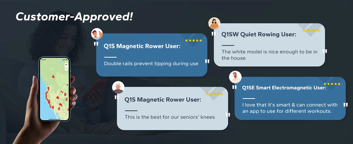 Less Noise While Rowing: Customized smooth and quiet magnetic flywheel system makes the workout extremely quiet. Q1S rower machine for home avoids the worries of bothering other family members.