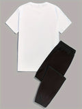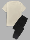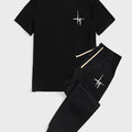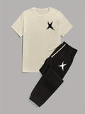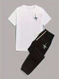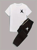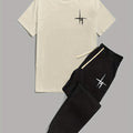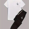 Mens 2 Piece Fashion Outfit Set - Bold Line Pattern Tee & Drawstring Sweatpants - Casual, Comfortable, and Stylish