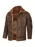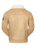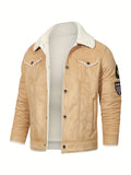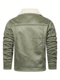 Men's Casual Polyester Jacket with Faux Lining, Solid Color, Long Sleeve, Single Breasted Placket, Non-Stretch Fabric, Regular Length, with Pockets - Daily & Casual Wear, Chilly Weather Apparel | Subtle Embellished Jacket | F
