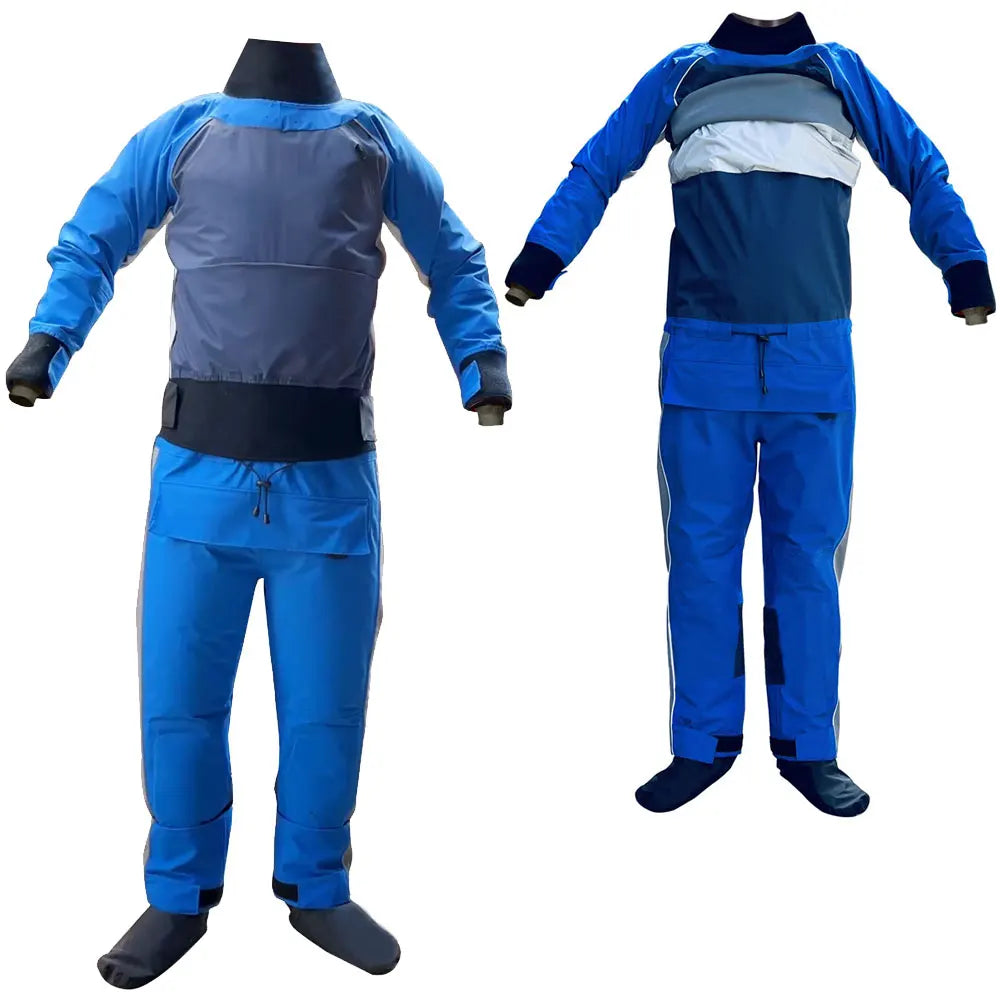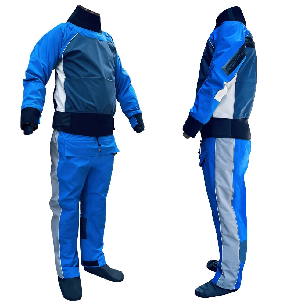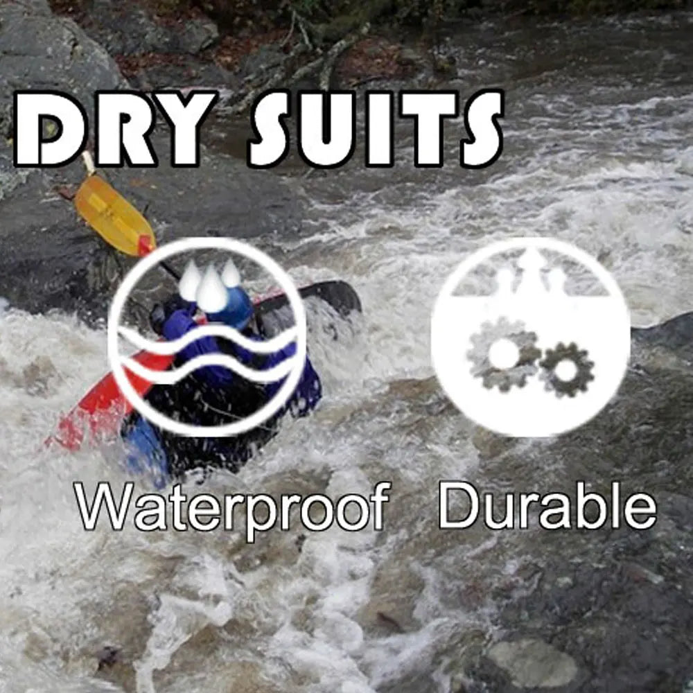 Latex ,wrist gaskets and black fabric socks,the kayaking paddling dry suit offers excellent protection on big rivers and rough seas. These seals are protected with a fabric over layer meaning they last longer and actually help you feel better protected while whitewater kayaking,sailing,boating,rafting,splash-proof zippered pockets at the thigh and sleeves keep essentials accessible,the wrists and ankle can be adjusted to fit better using a velcro strap.