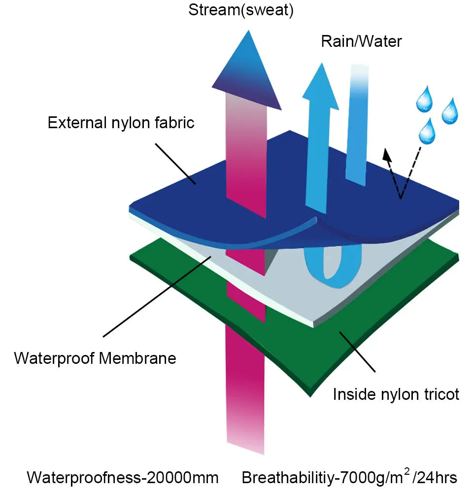 Material: Nylon,Neoprene,3-Layer with membrane finished