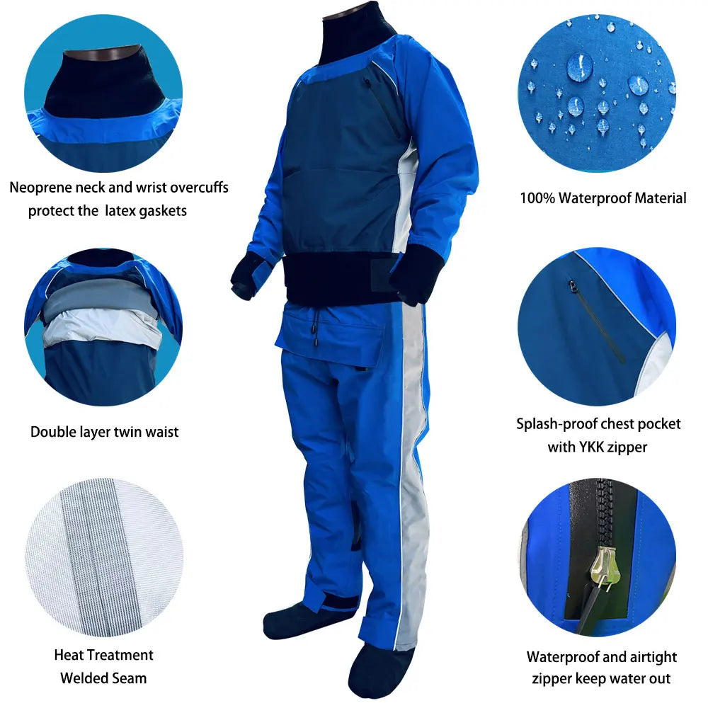 Mens Kayak Waterproof Dry Suits 1 Piece Drysuit for Kayaking Boating Fishing Working Cold Water Rafting Sport Sailing Clothes