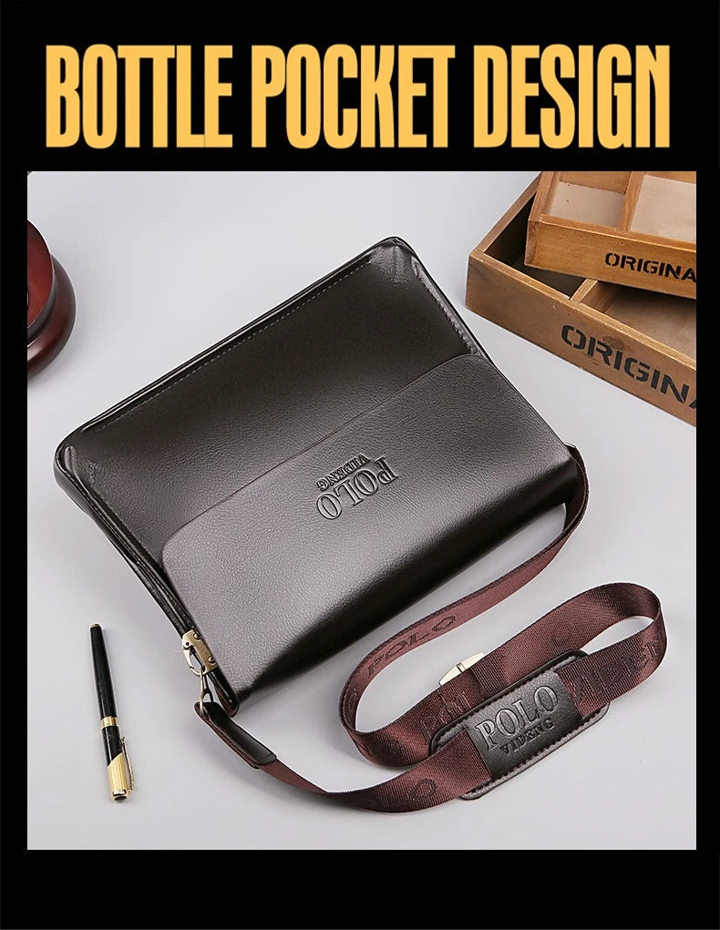 Men's POLO Crossbody Bag Casual Business Style Vertical Shoulder Bag High-quality Leather Trendy Men's Bag Daily Commuting