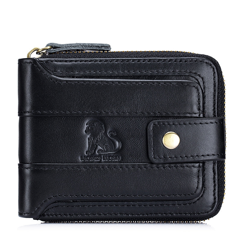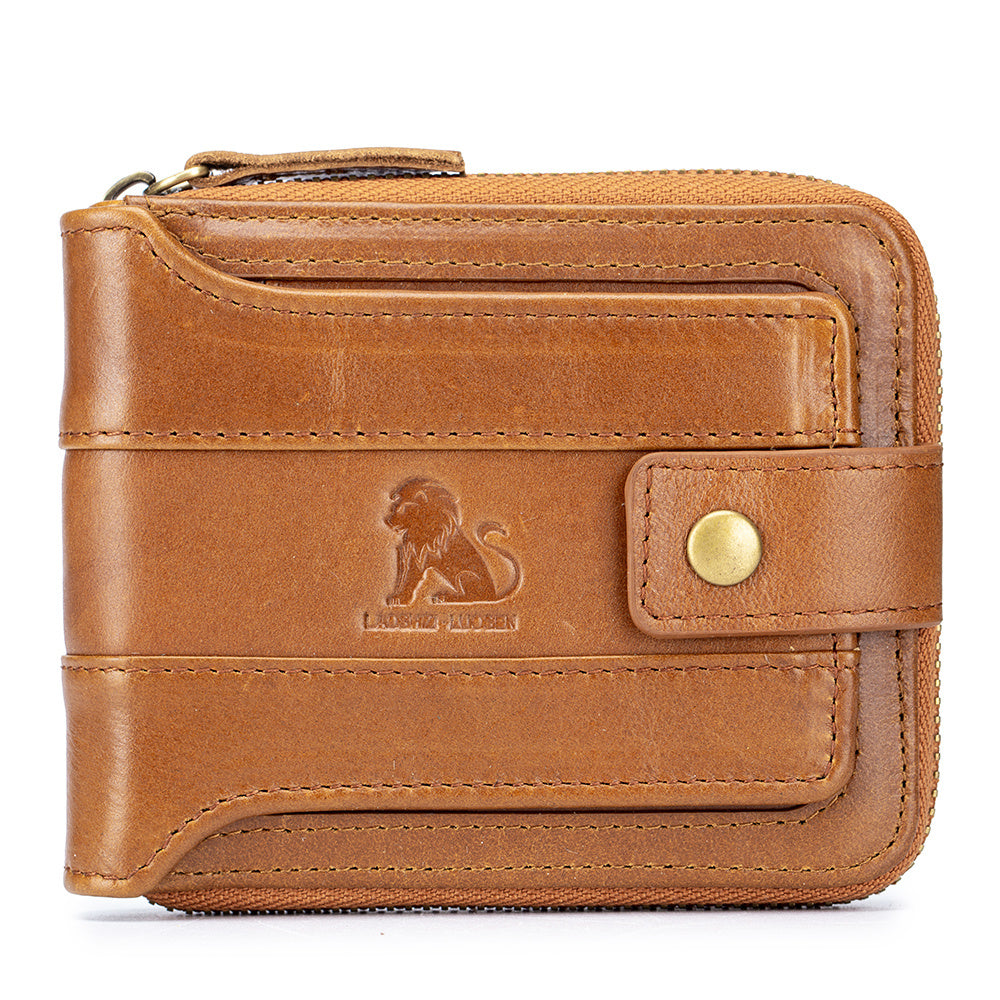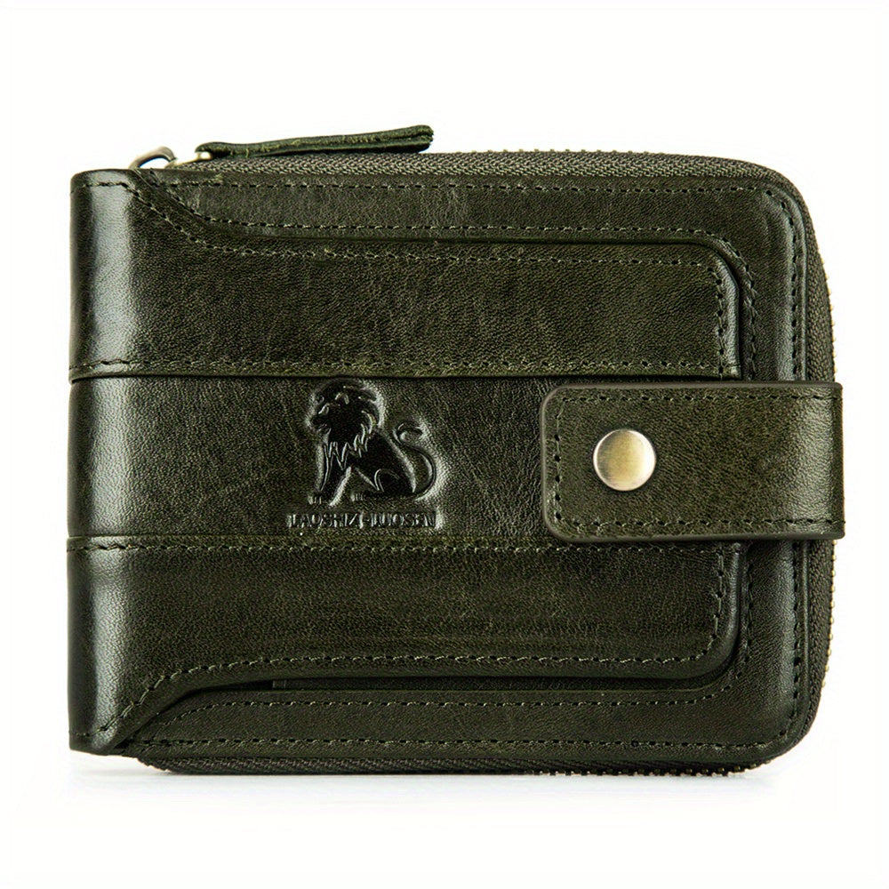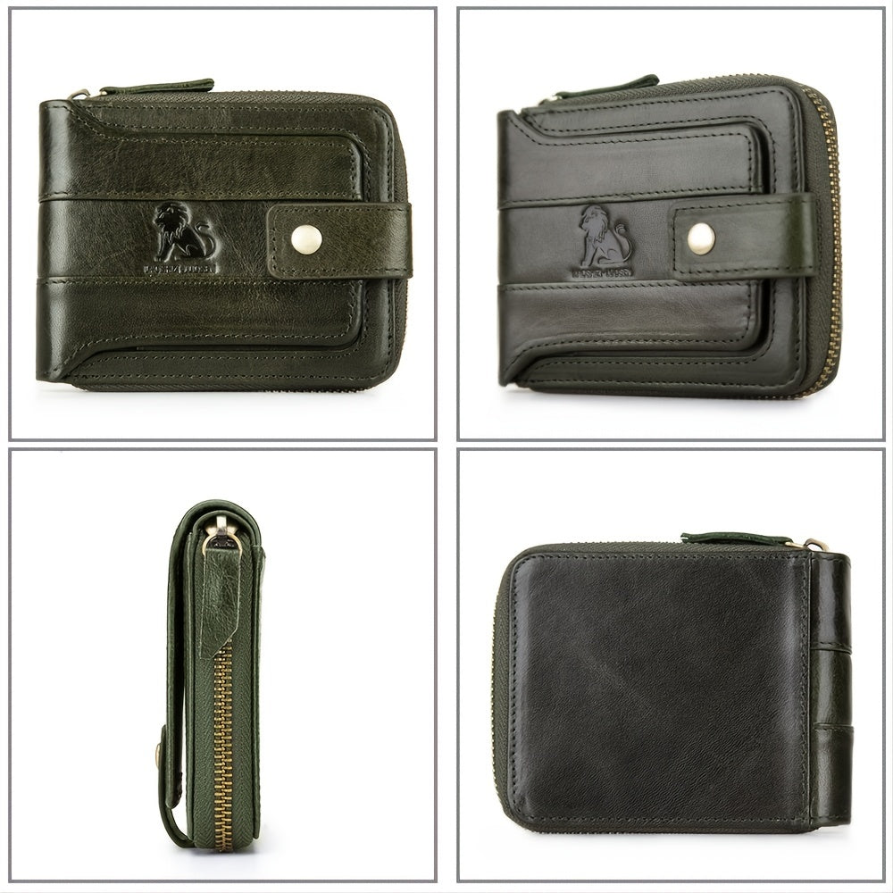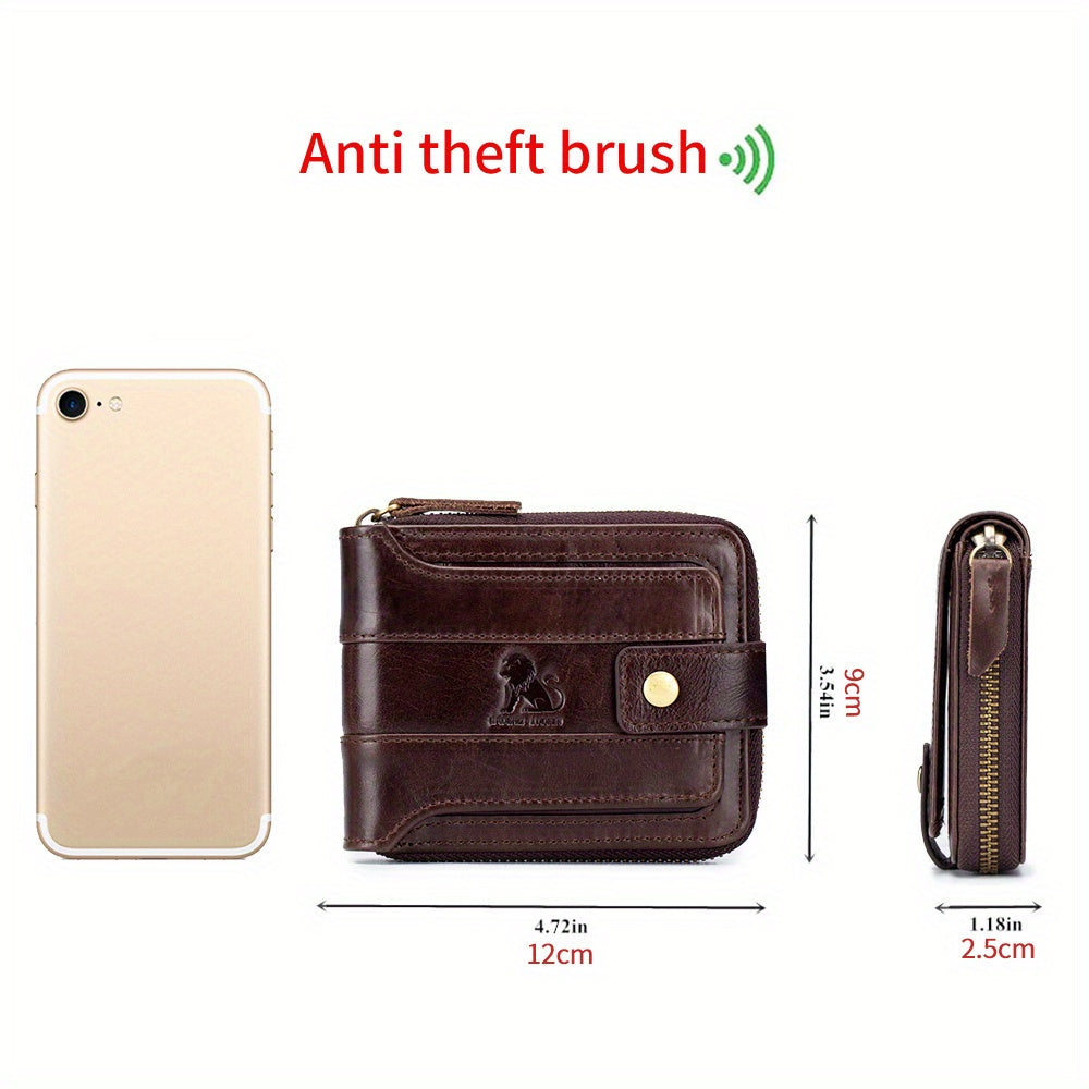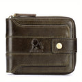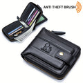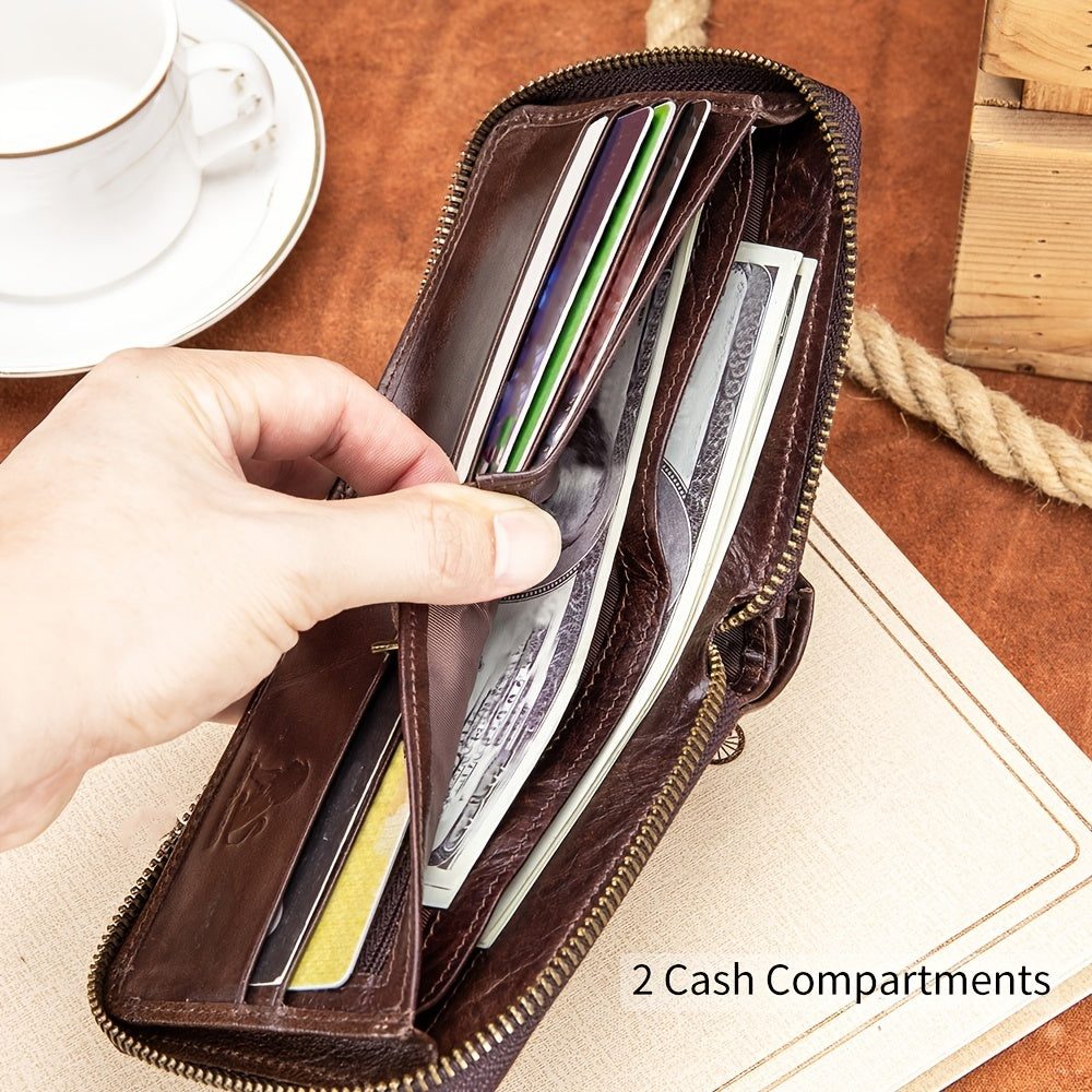 Men's Retro Genuine Leather Multi-Card Wallet with Zip, Large Capacity, Anti-Theft