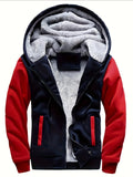 Men'S Winter Thick And Padded Warm Zip Up Hooded Jacket