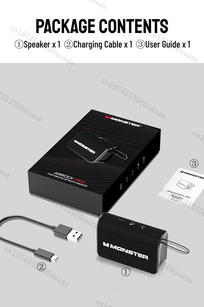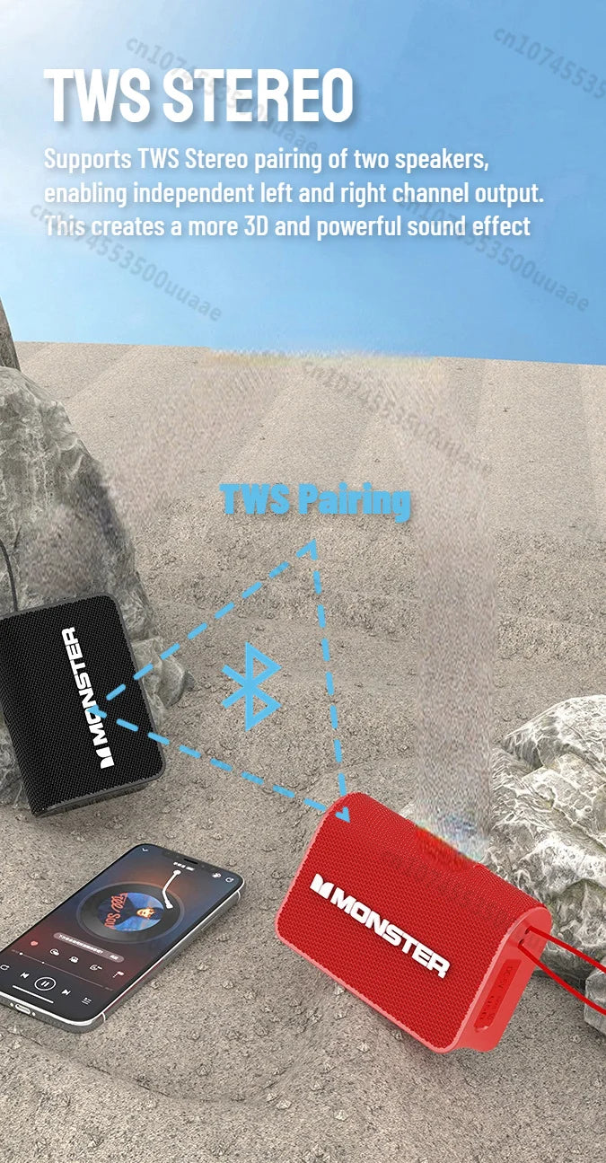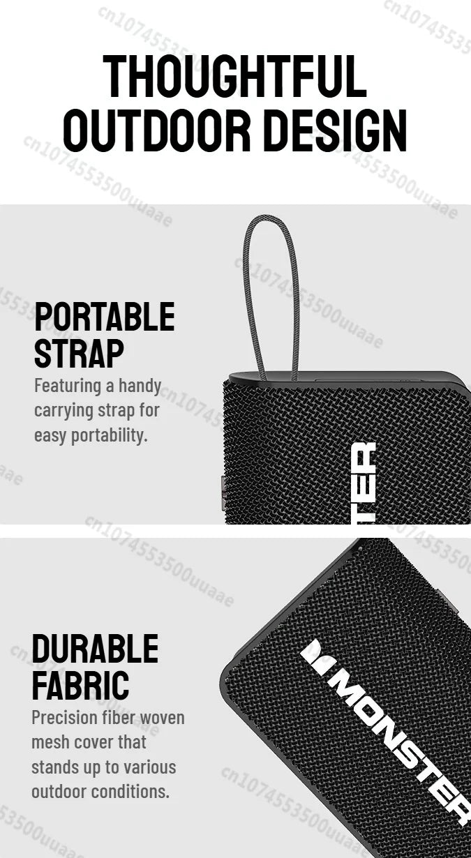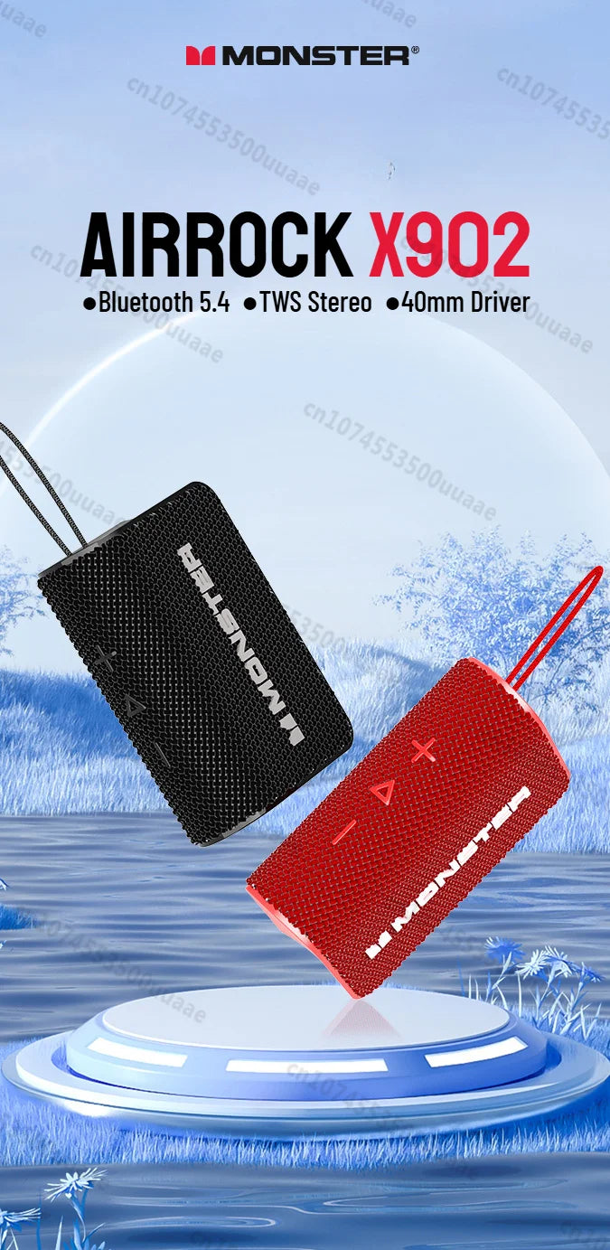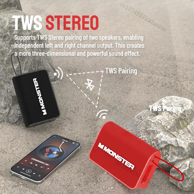 Monster X902 TWS Stereo Bluetooth 5.4 Speaker Outdoor Portable Bluetooth Sound Box IPX4 Waterproof Subwoofer Powerful Deep Bass
