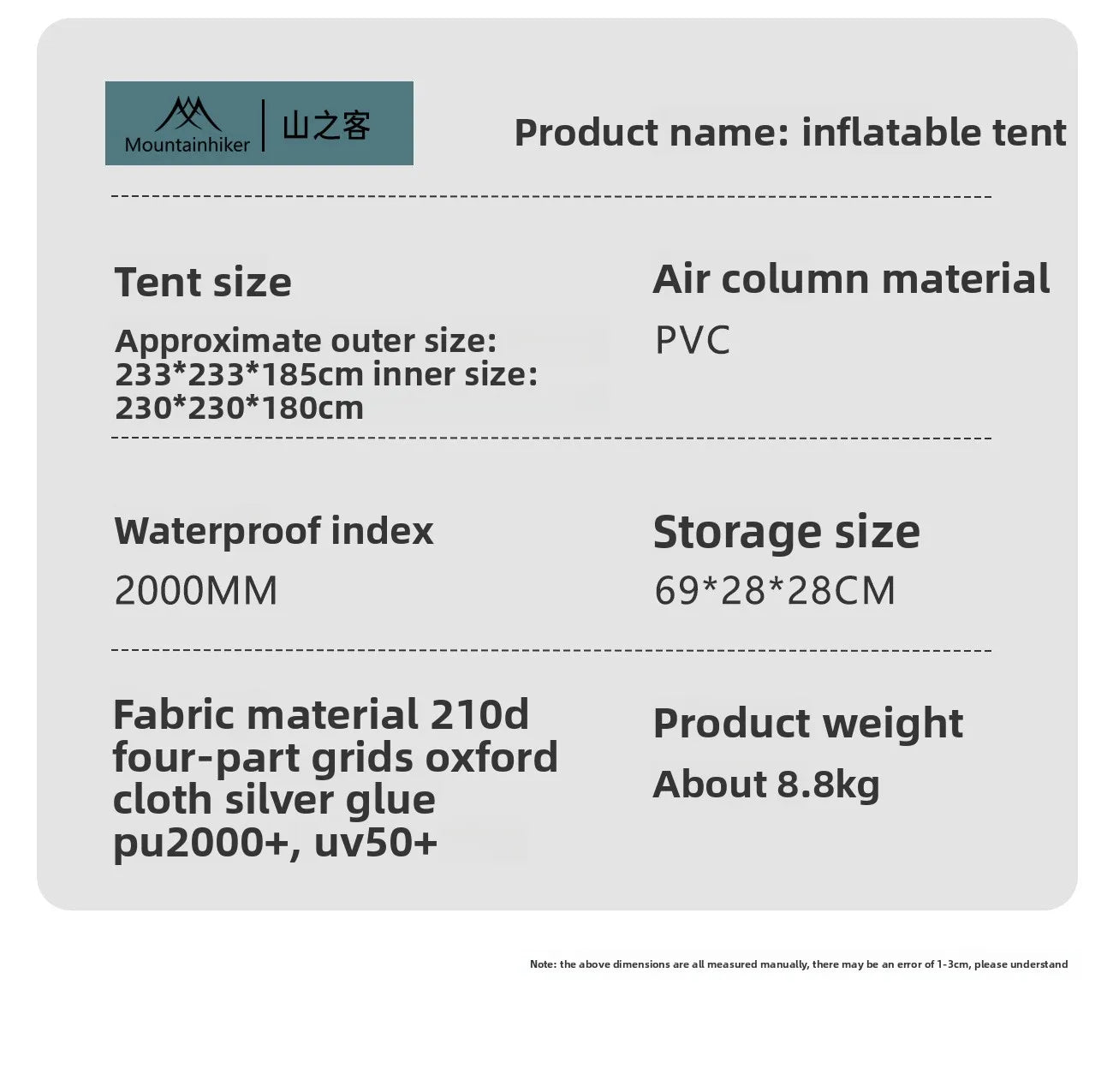 MOUNTAINHIKER InflatableCabin Outdoor Camping Tent Multi-person Large Capacity Leisure Park Tent Rainproof Sun Protection Awning