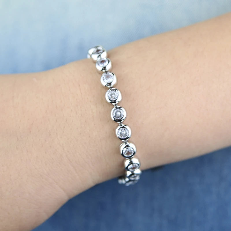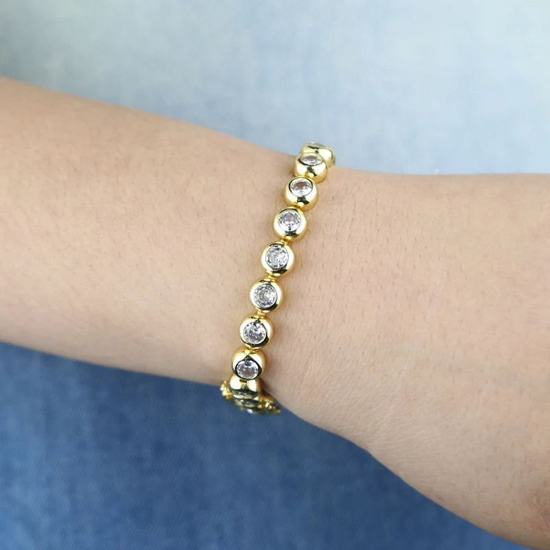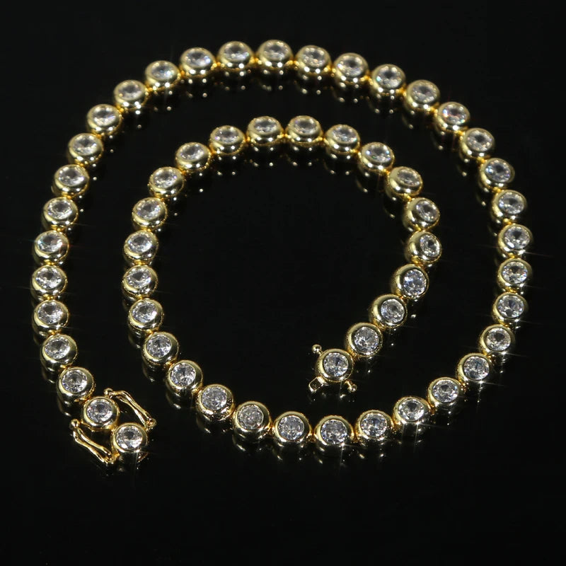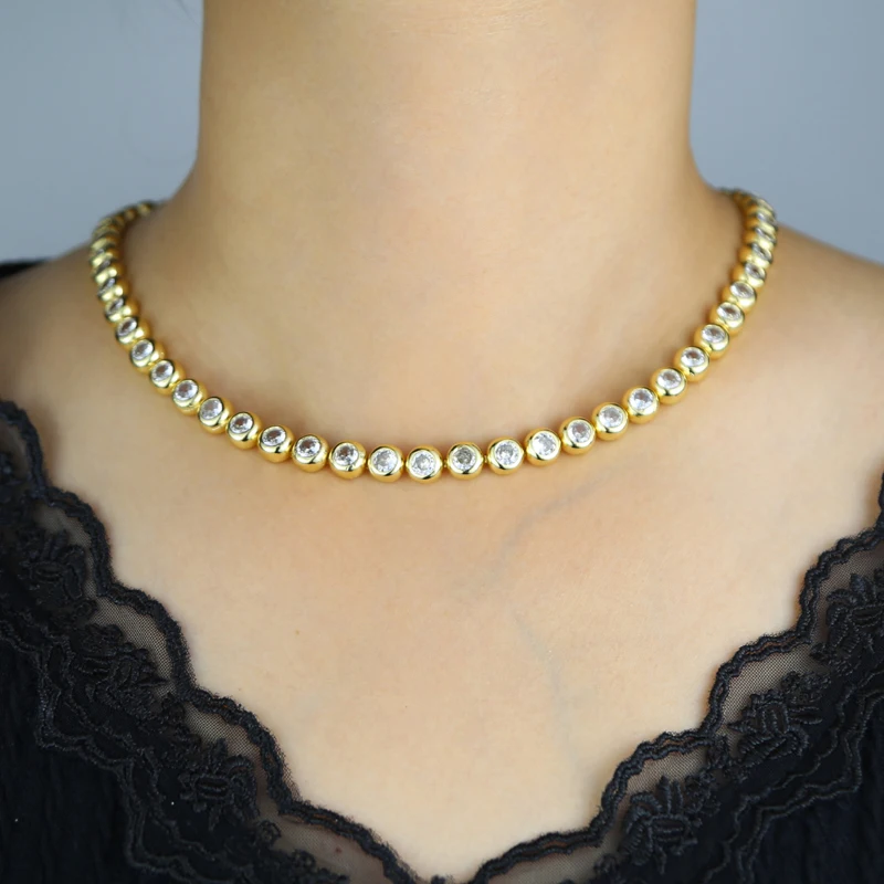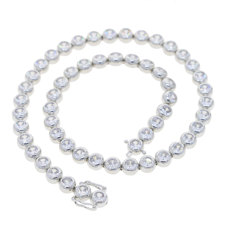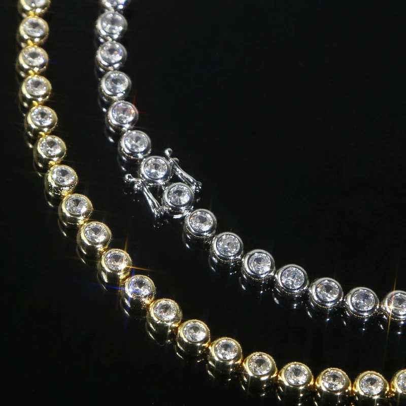 New Arrived Top Quality Fashion Women Female Jewelry Set Bezel 5A CZ Round Beaded Tennis Chain Bracelet Necklace