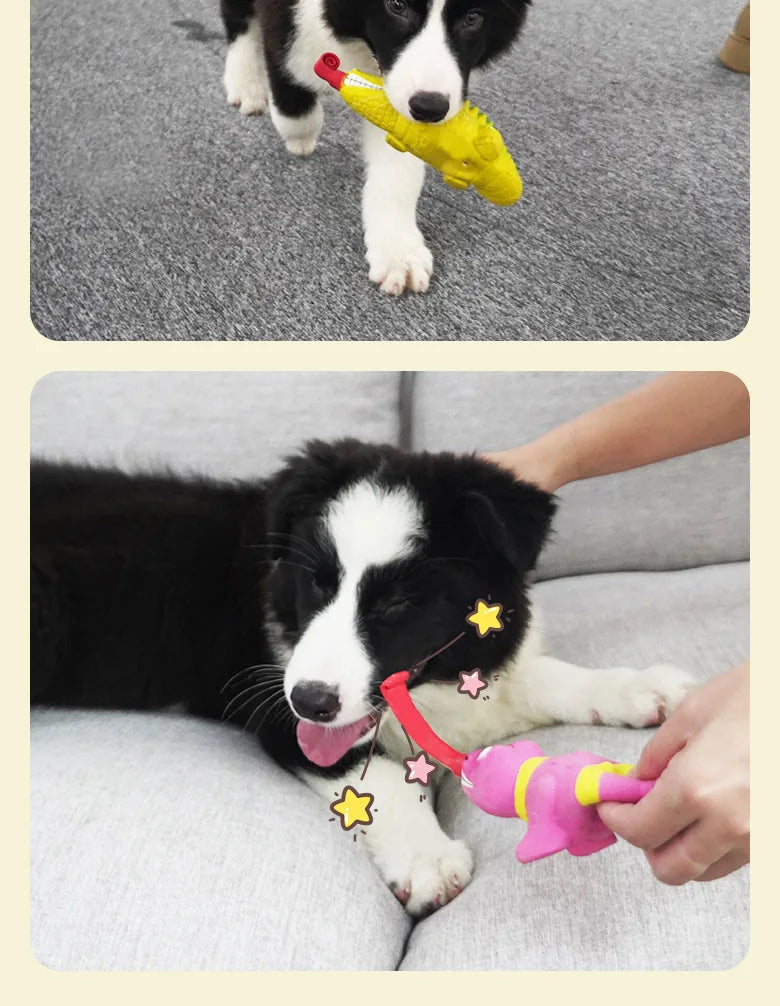 This cute pet toy is made of high quality latex and has the appearance of a dog image with realistic expressions and colors, making it perfect for dogs of all sizes.
