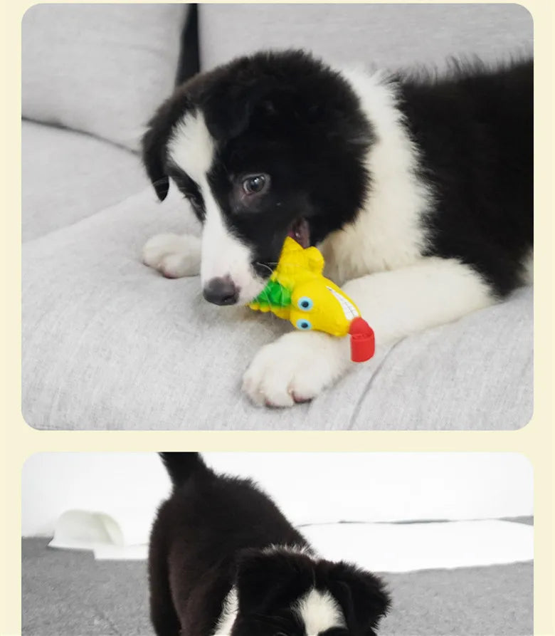 The inside of the toy is equipped with plastic pieces that make a crisp sound when the pet bites or shakes it, adding to the pet's entertainment.