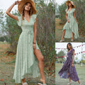 New Style Elegant Long Dress Women's Short-sleeved V-neck Bohemian Strappy Holiday Dress