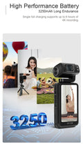 5K Video Camera with 1/2.5 inch Sensor: The palmcorder camera M3 features a powerful 1/2.5-inch CMOS sensor that captures details better and shoots sharper in darker light. 4K 60FPS Ultra-HD recording with slow motion to zoom in on the most beautiful moments. With the flip-up lens, you can also take 180° lens smooth close-ups with one hand.
