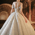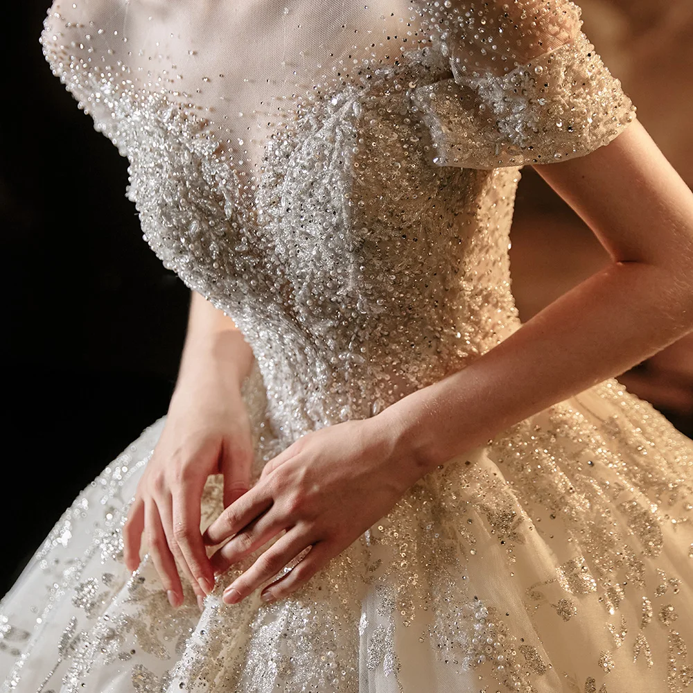 keywords: Diamond Sequins Applique Boat Neck Bride Gowns