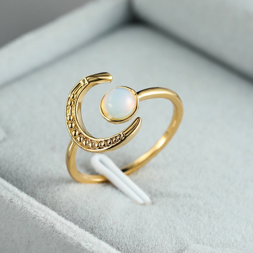 Personality Colorful Moonstone Open Adjustable Ring Temperament Retro Female Hand Accessories