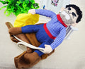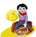 The cowboy's hat and triangular binder can be put on and take off.