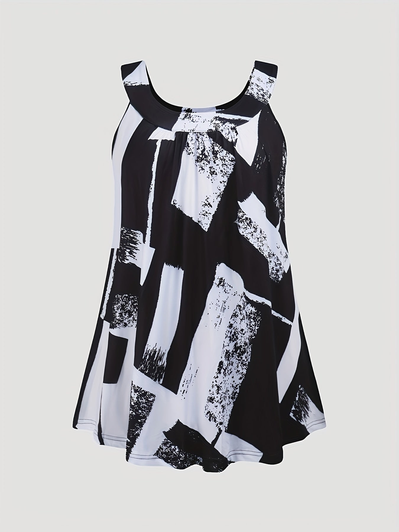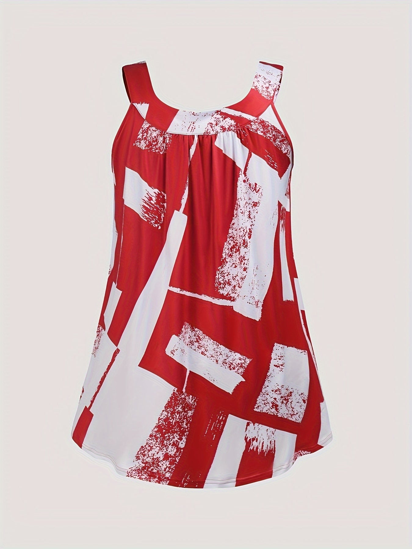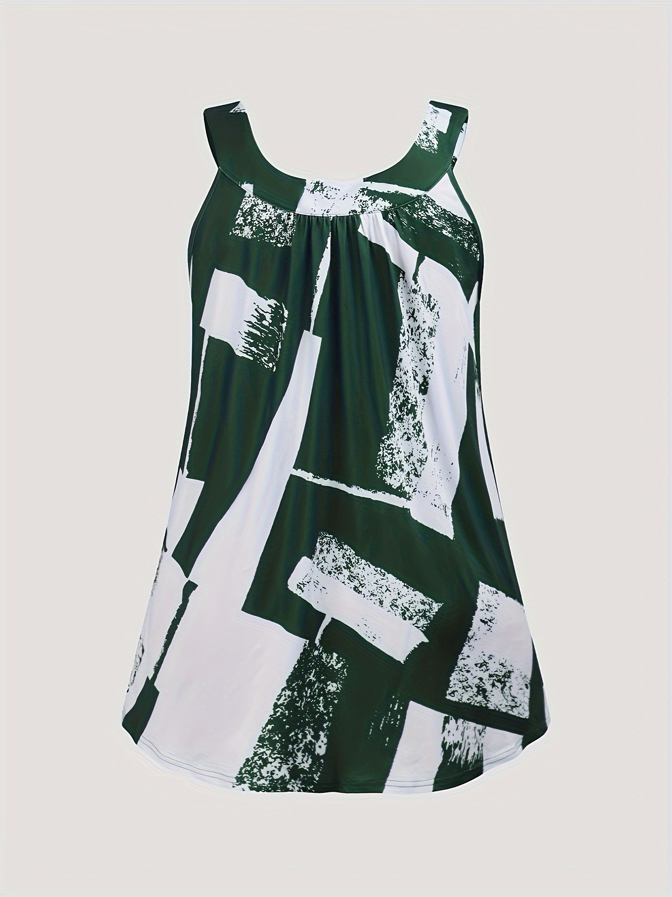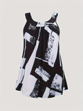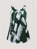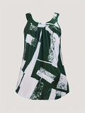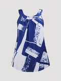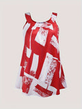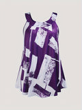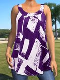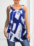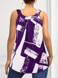Plus Size Round Neck Colorblock Curved Hem Casual Tank Top