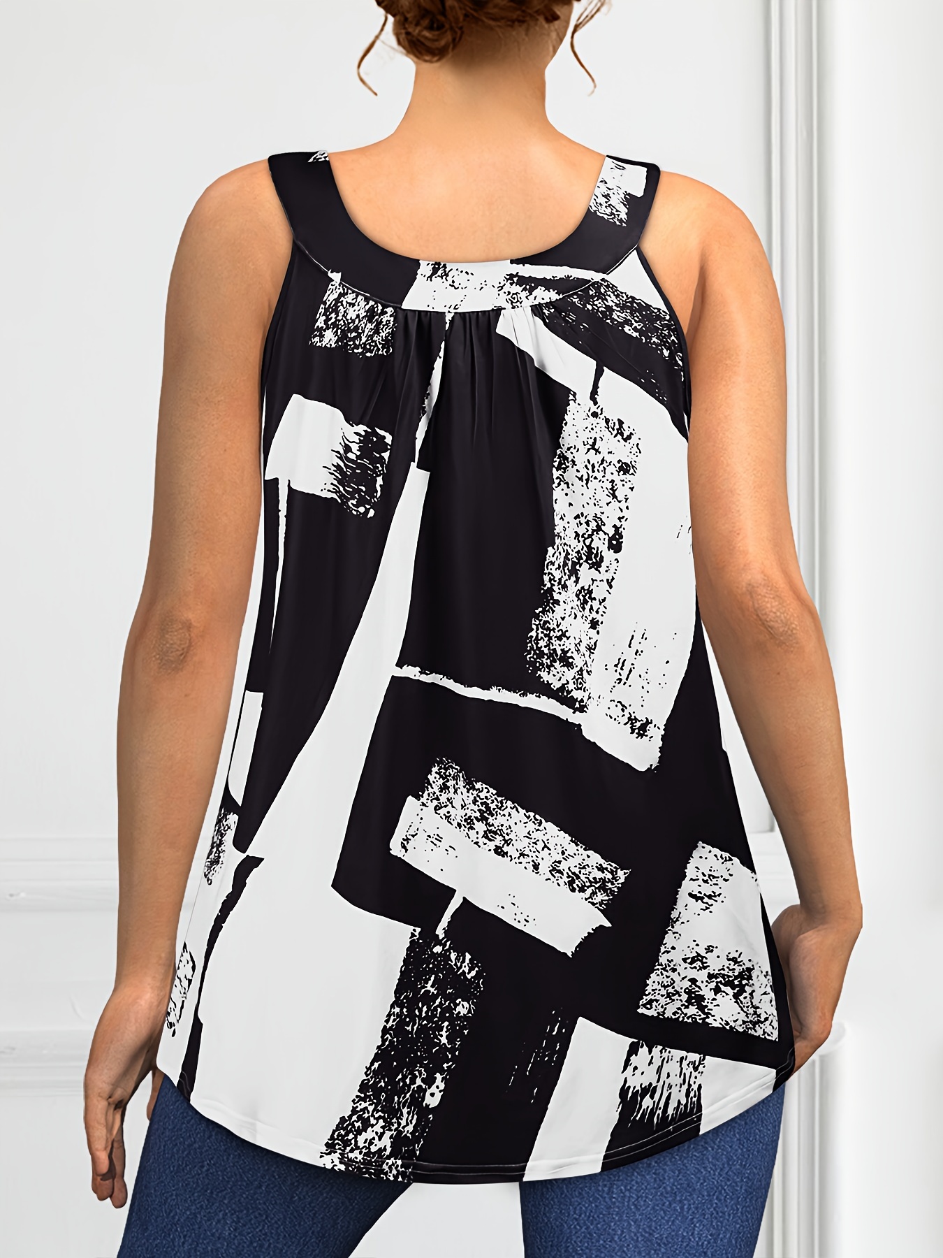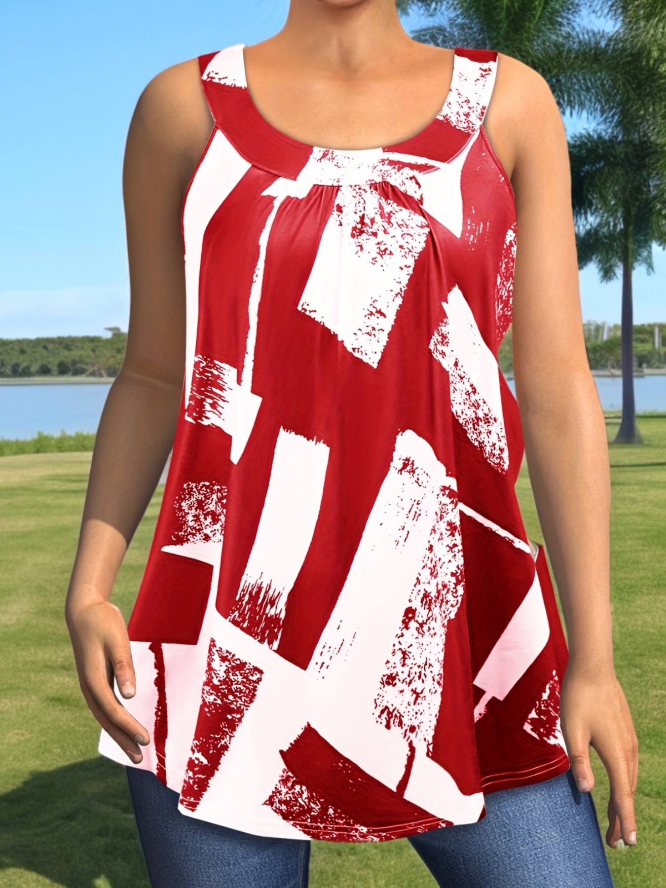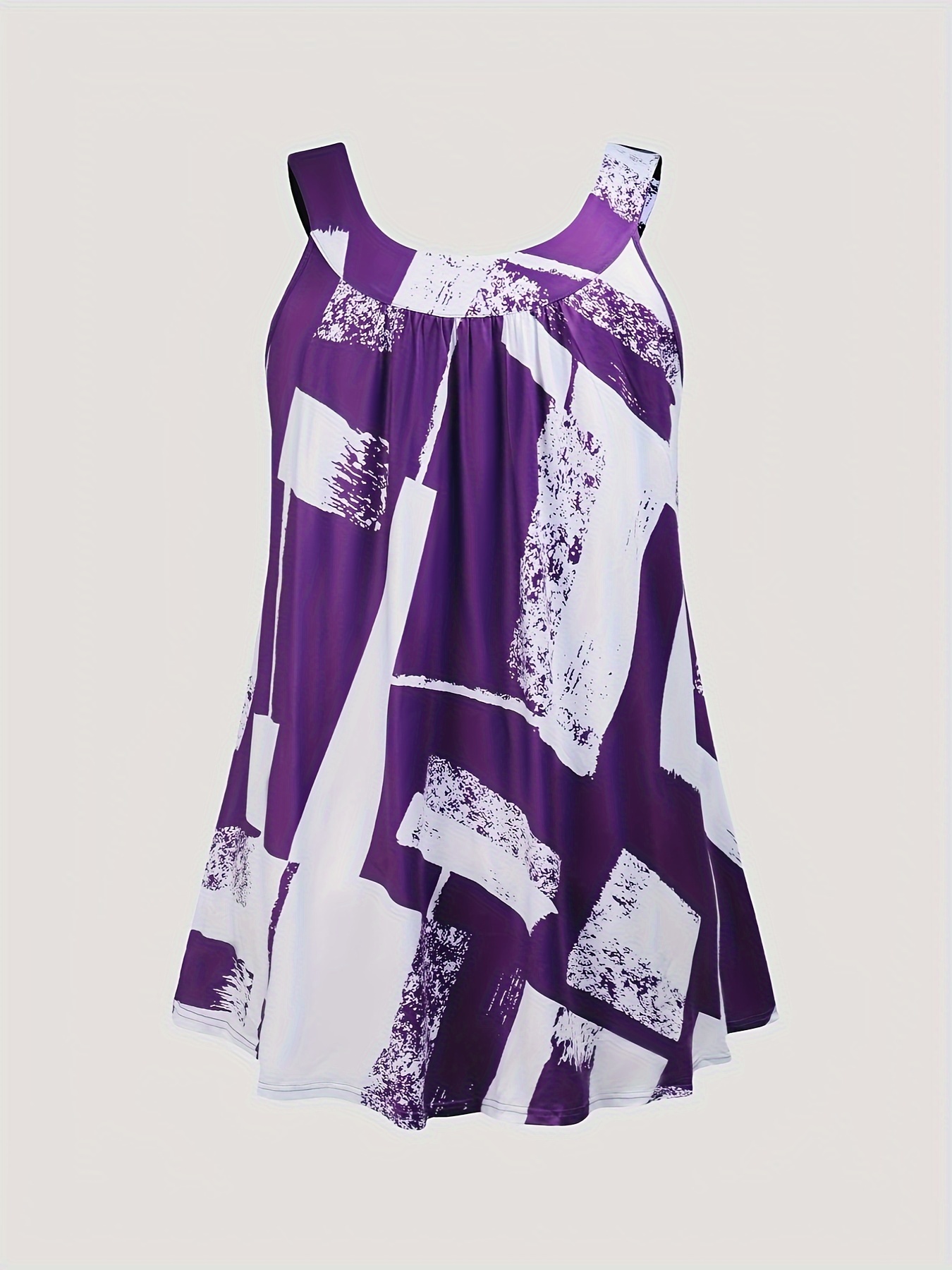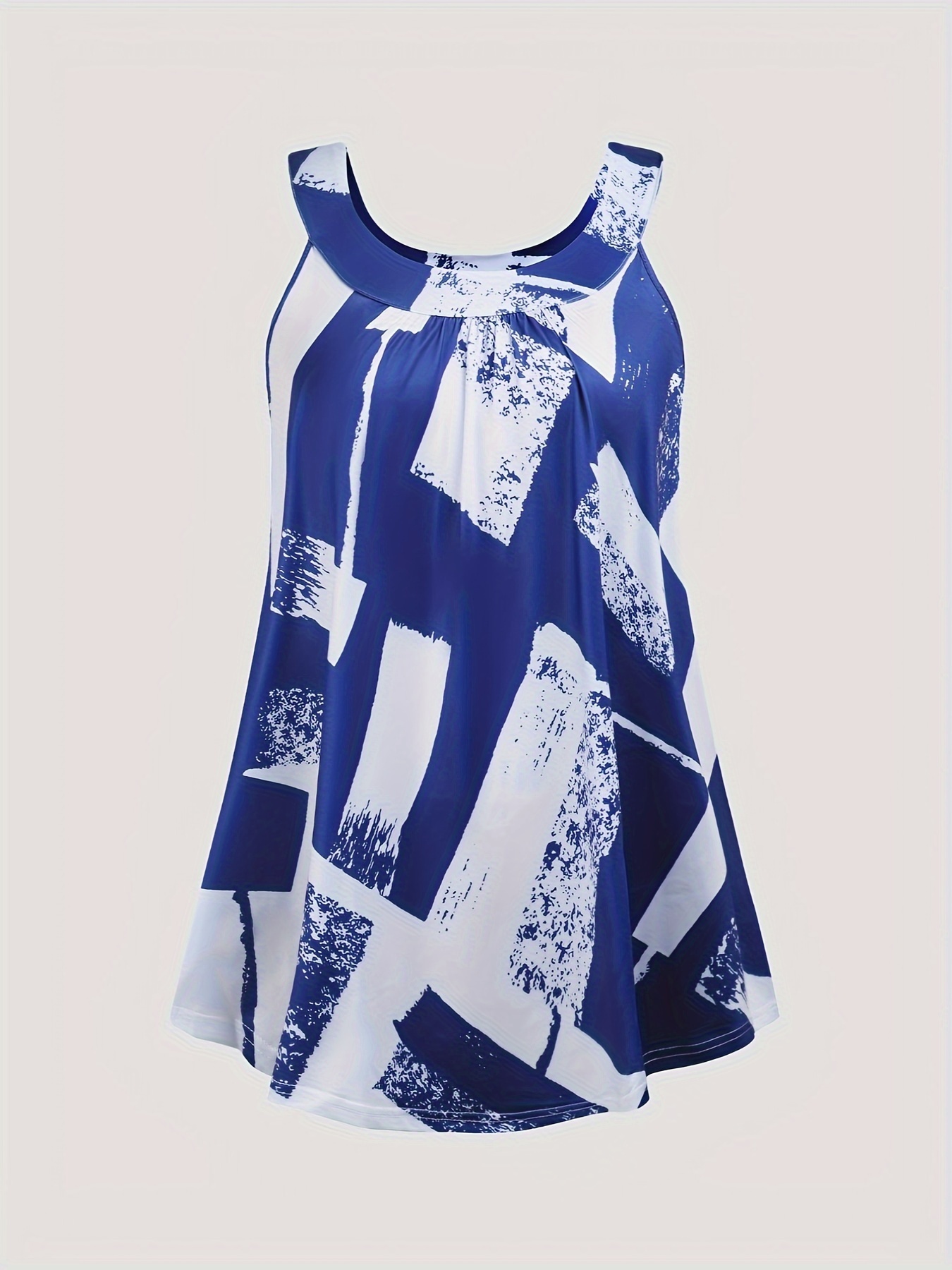 Plus Size Round Neck Colorblock Curved Hem Casual Tank Top