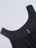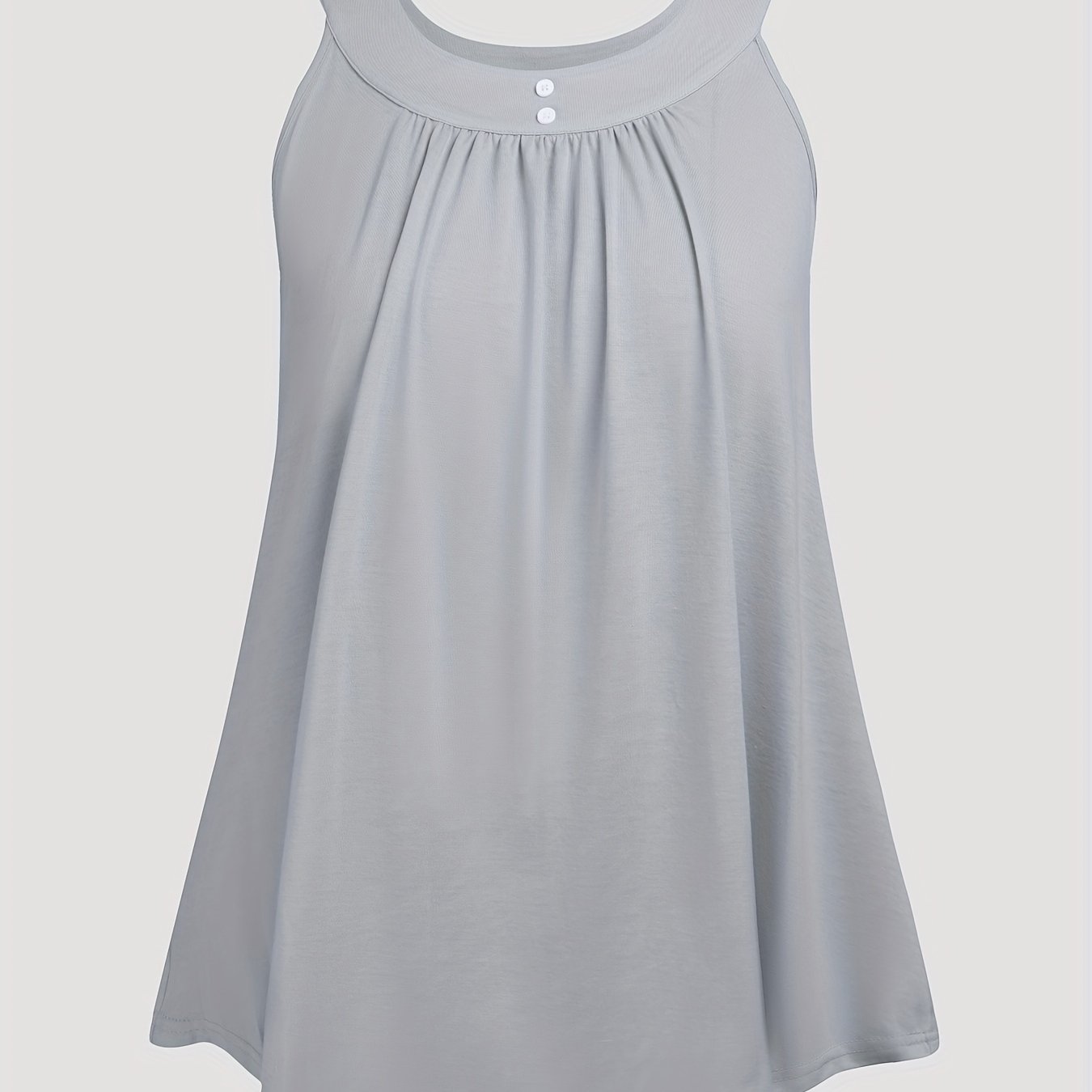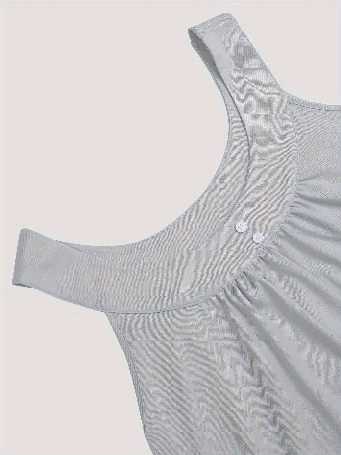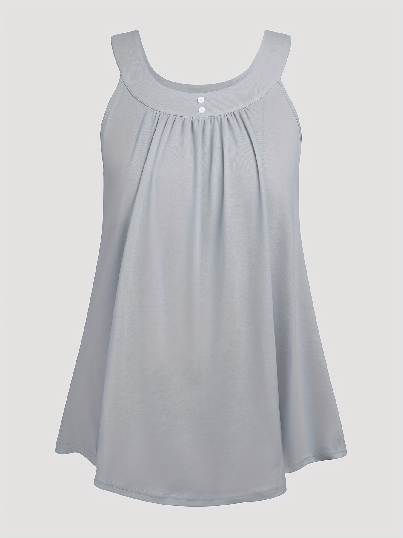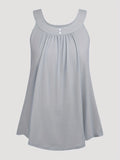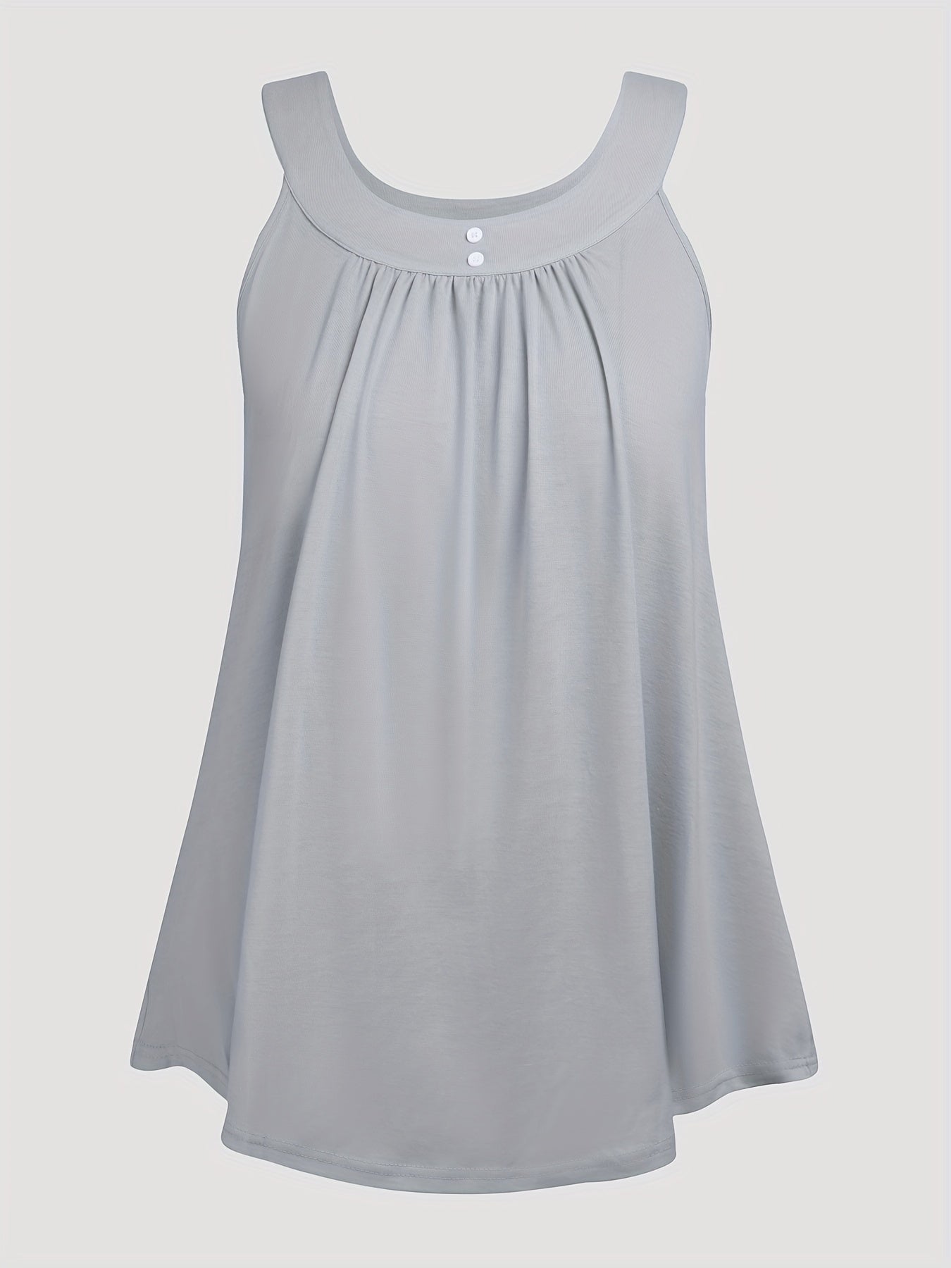Plus Size Solid Color Tank Top with Fashionable Button Detail - Flattering Curve Hemline & Medium Stretch - Classic Crew Neck for Curvy Womens Summer Style