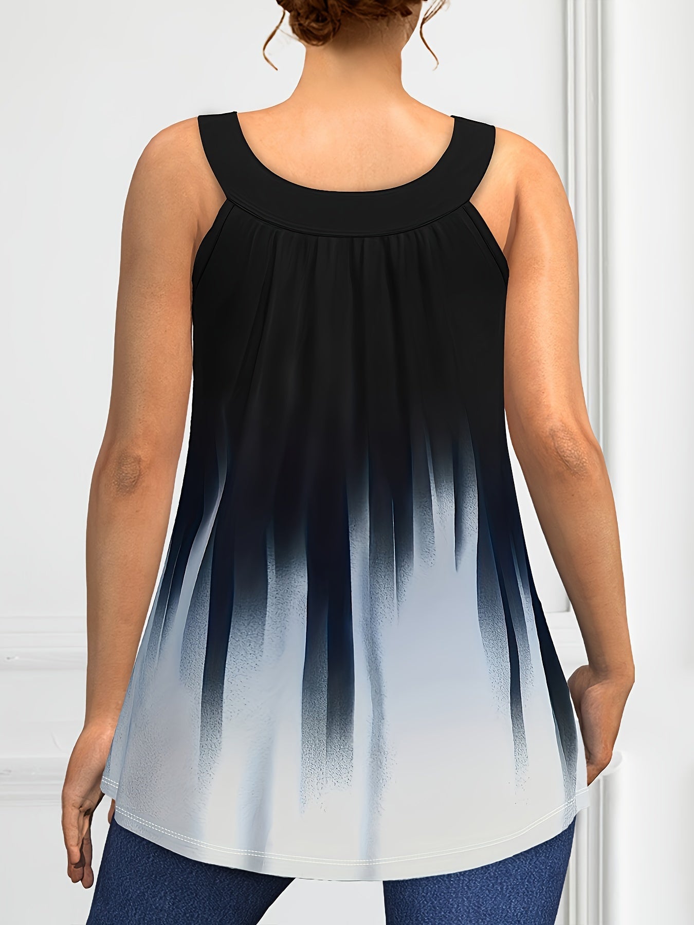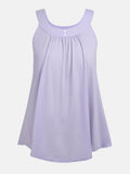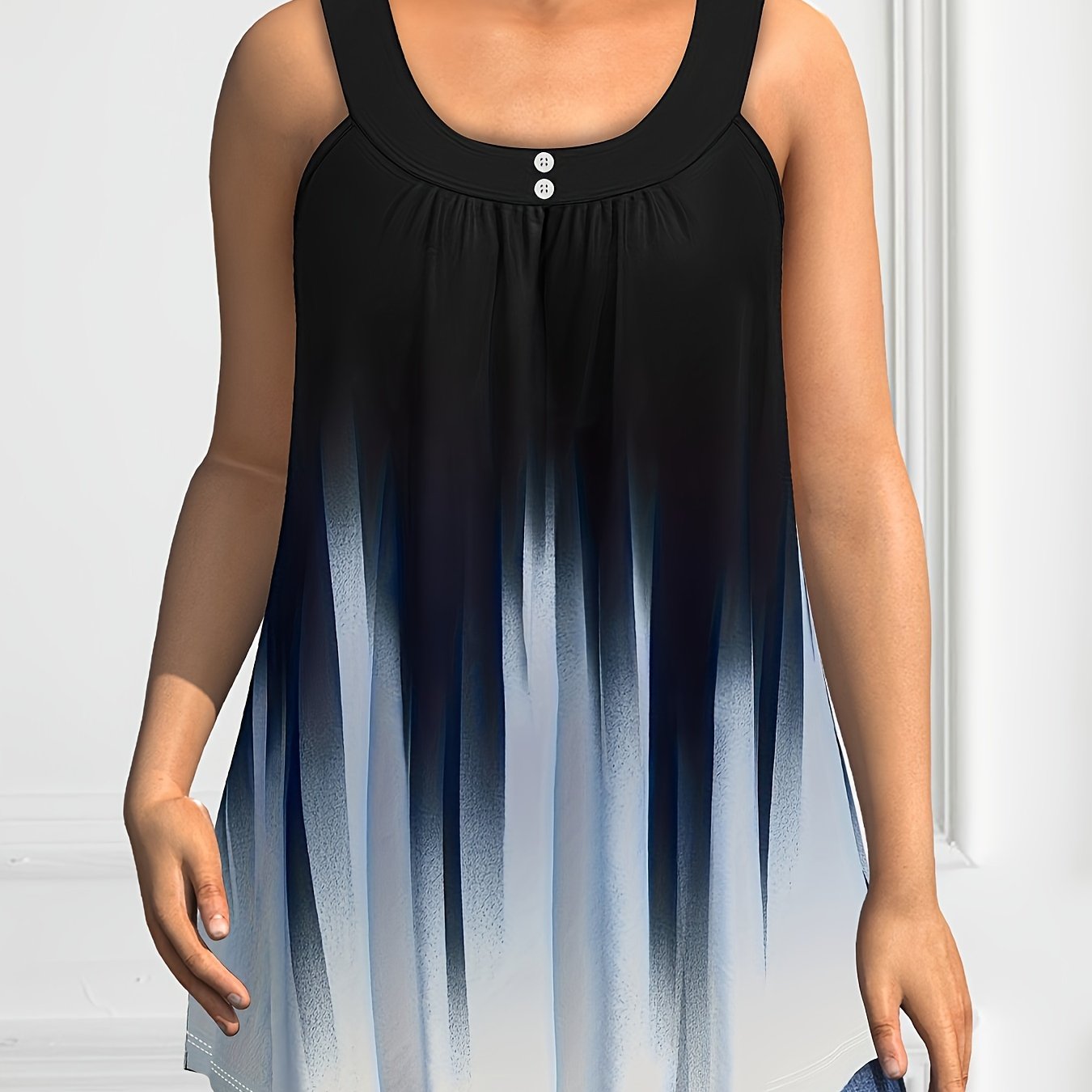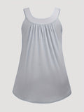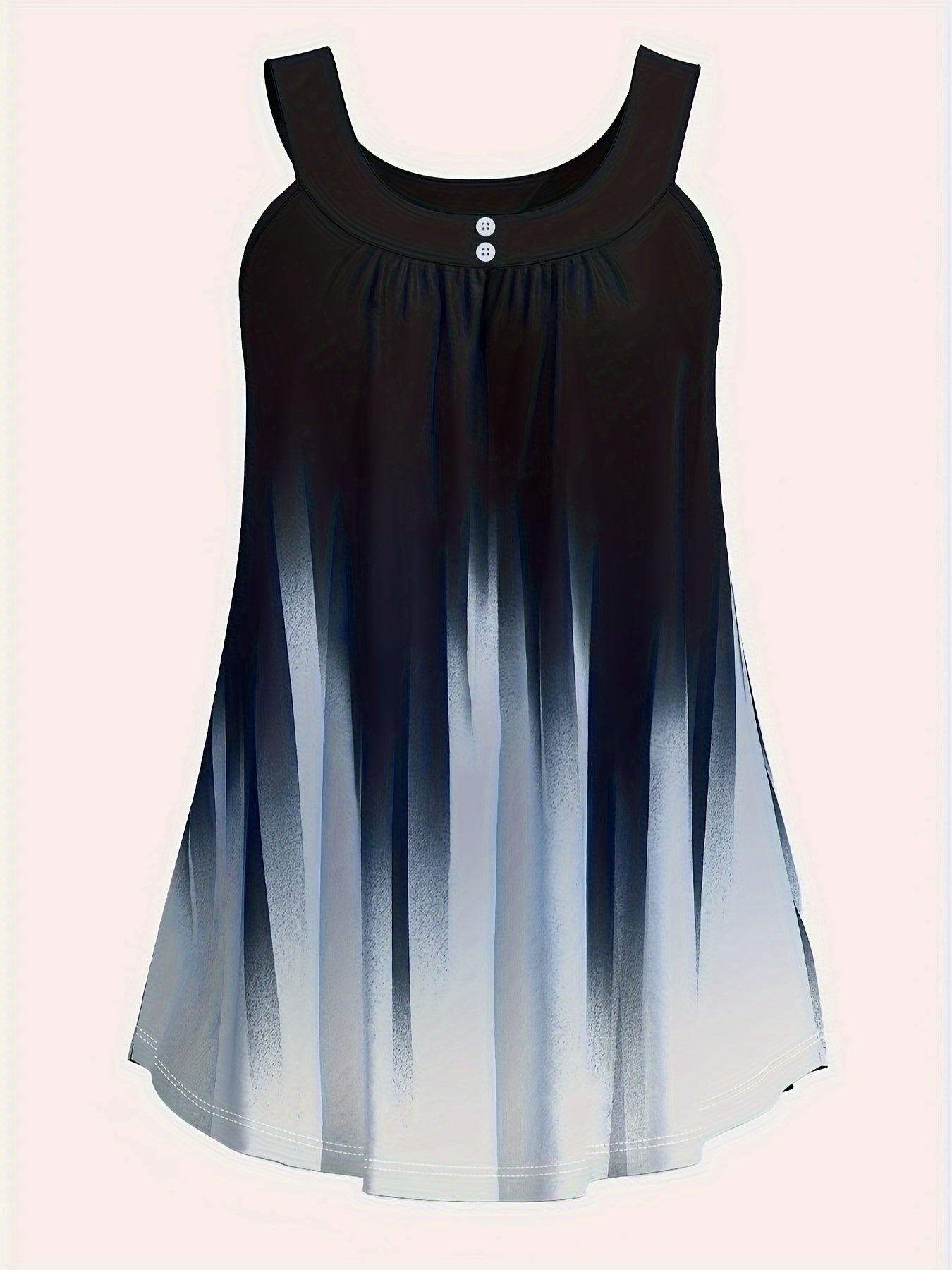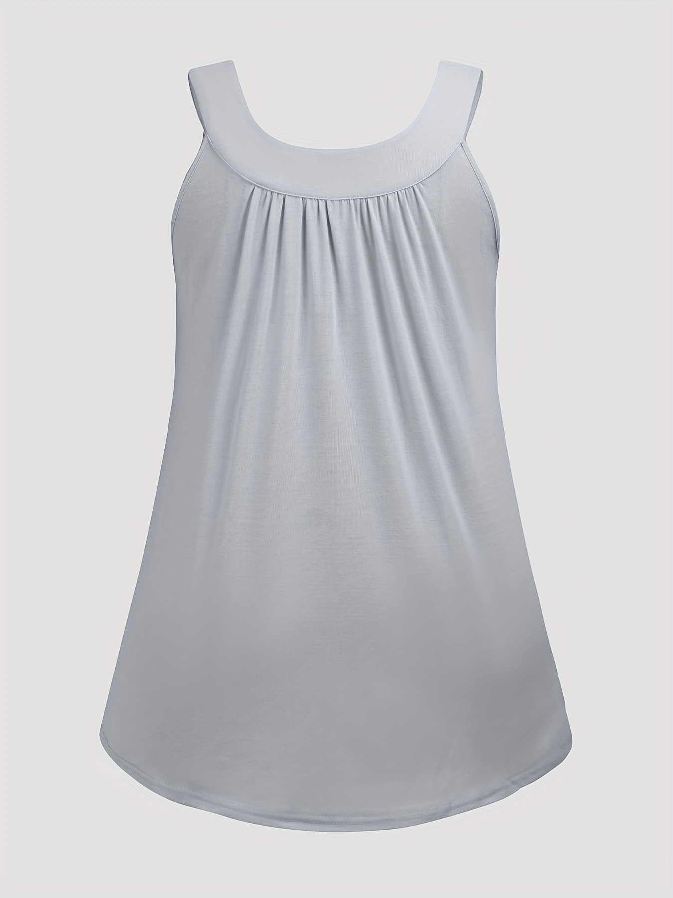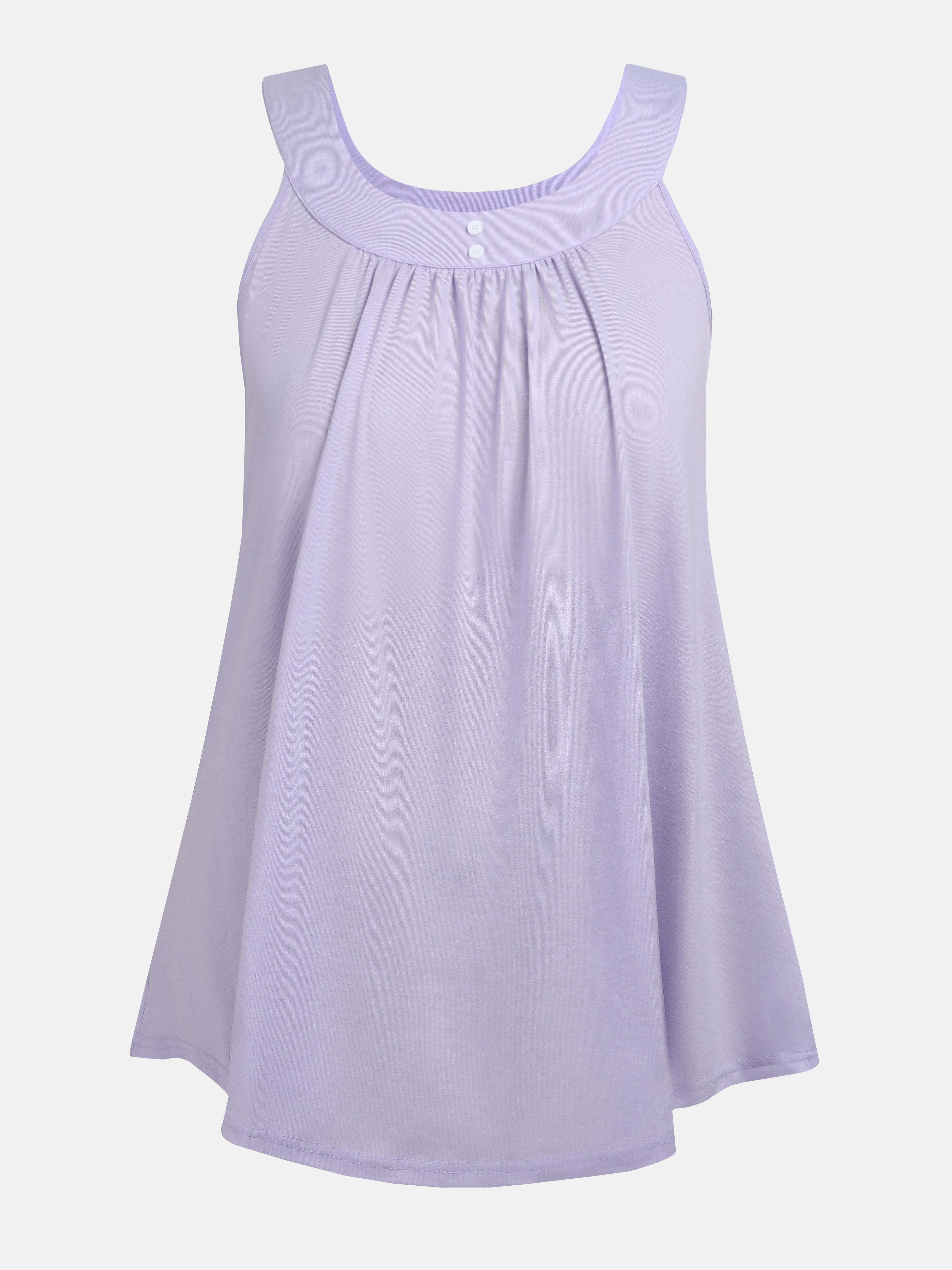 Plus Size Solid Color Tank Top with Fashionable Button Detail - Flattering Curve Hemline & Medium Stretch - Classic Crew Neck for Curvy Womens Summer Style