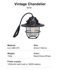Portable Camping Lamp, Retro Small Pendant Lamp, Tent Hanging Lamp, Waterproof Adjustable Light, Fishing Emergency Light
