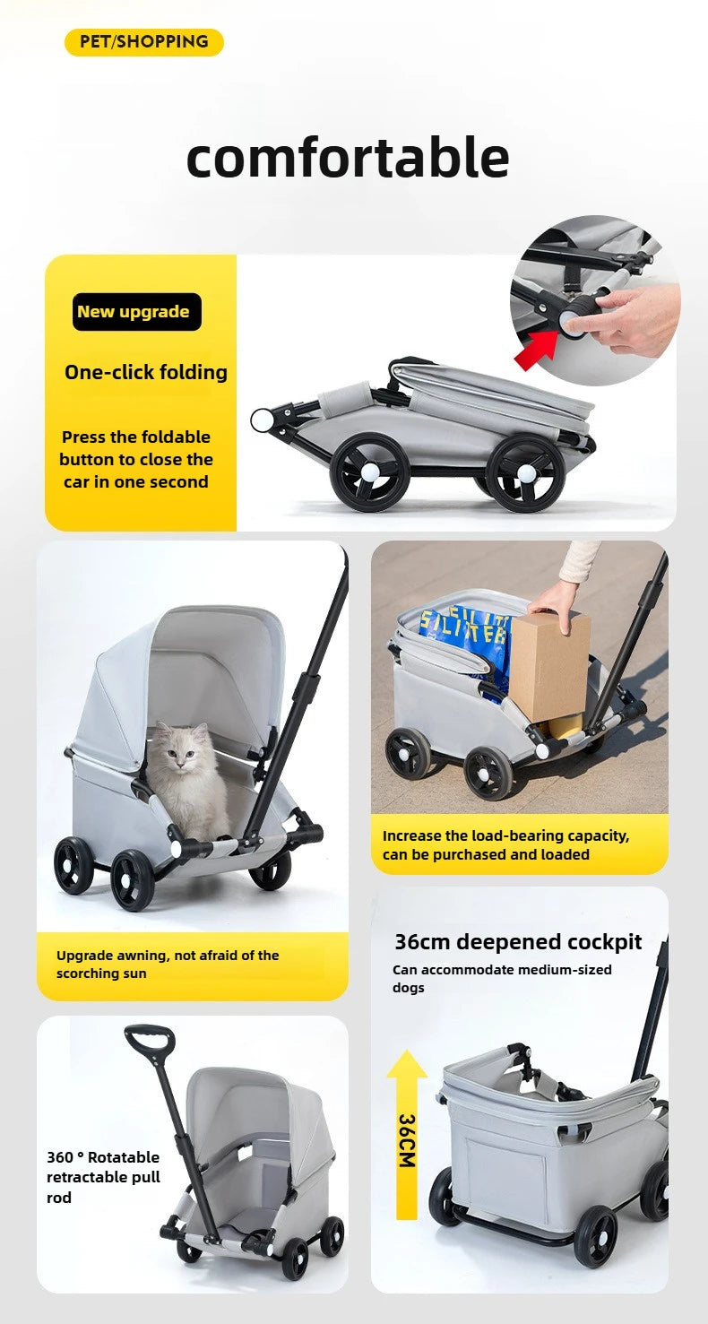 Portable Small Dog Pet Stroller Foldable Trolley Pet Stroller for Outdoor Use Lightweight Pet Stroller with Sunshade