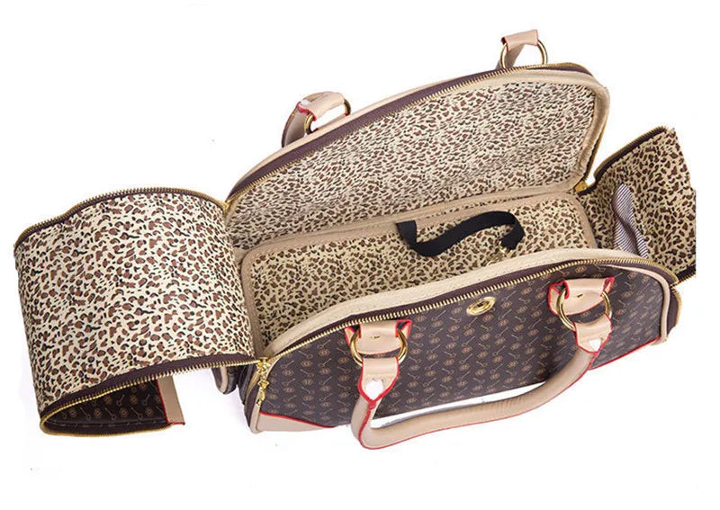 Pu Leather Small Cat Dog Carrier Bag Outdoor Travel Carry Tote Foldable Shopping Bag Portable Pet Dog Handbag
