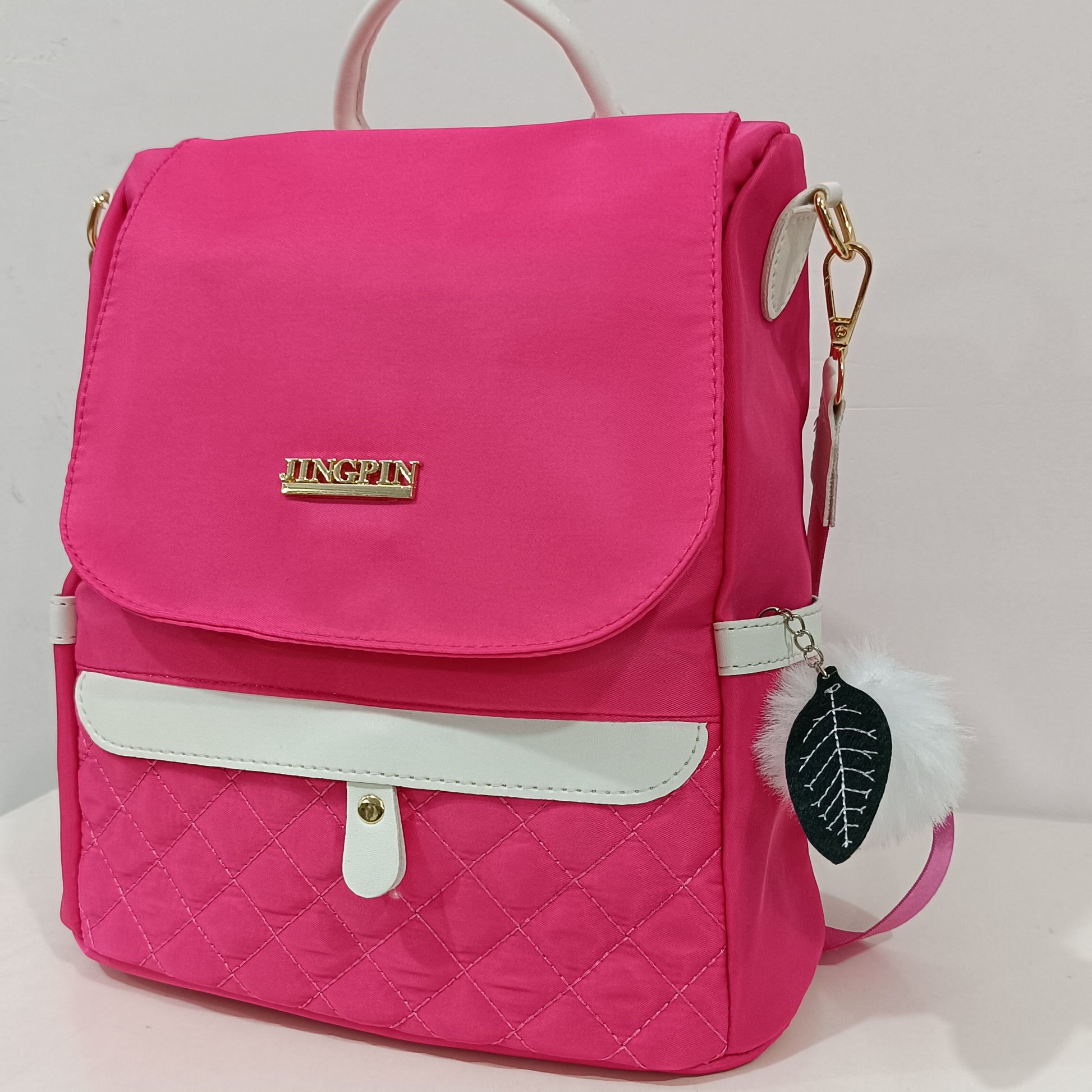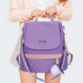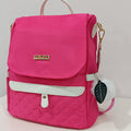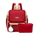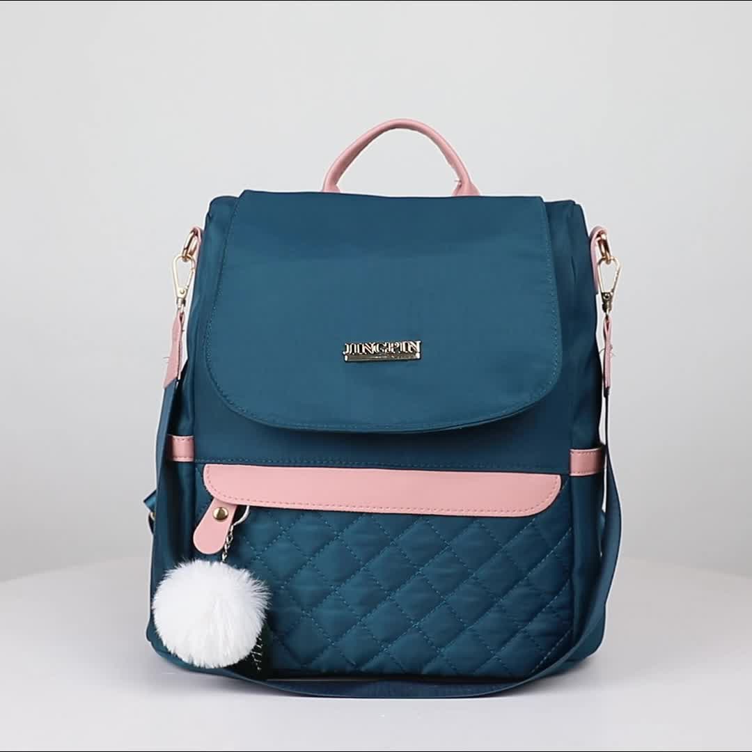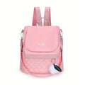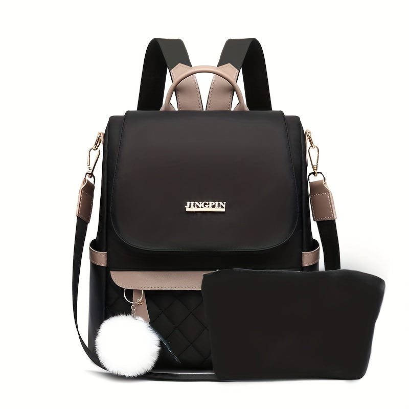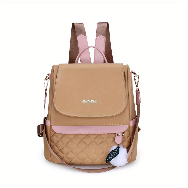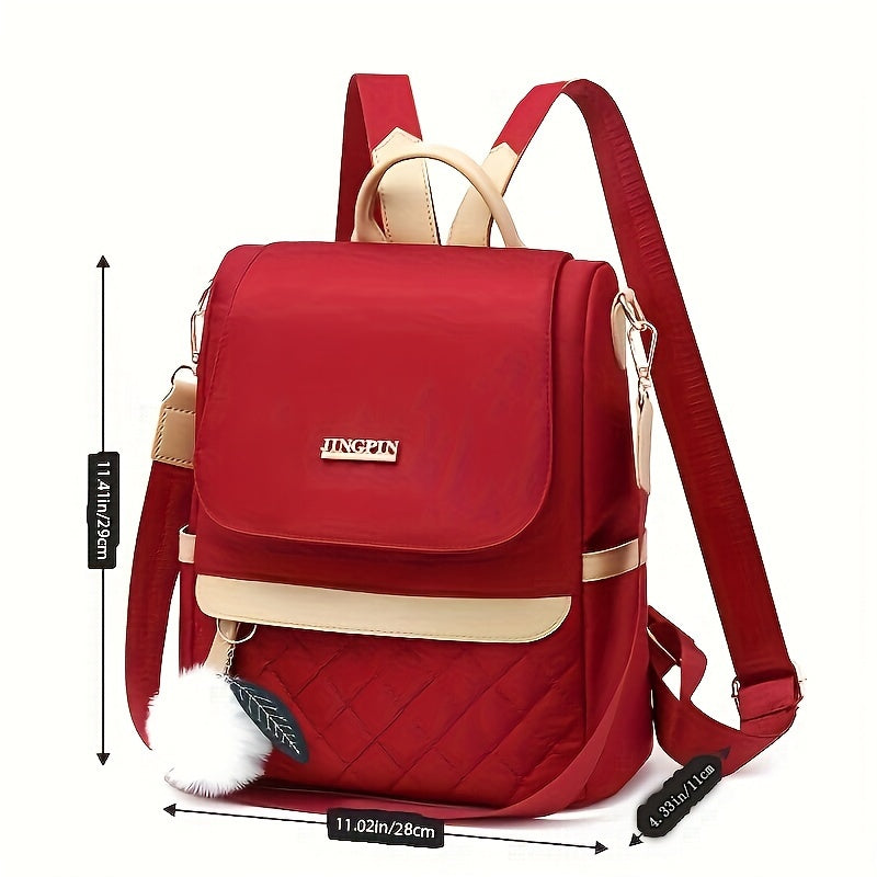 Quilted Flap Backpack Purse, Women's Nylon Travel Shoulder Bag, Casual Pompom Decor Bookbag