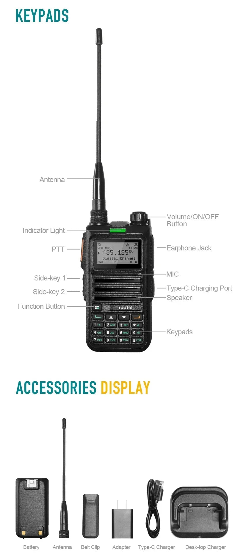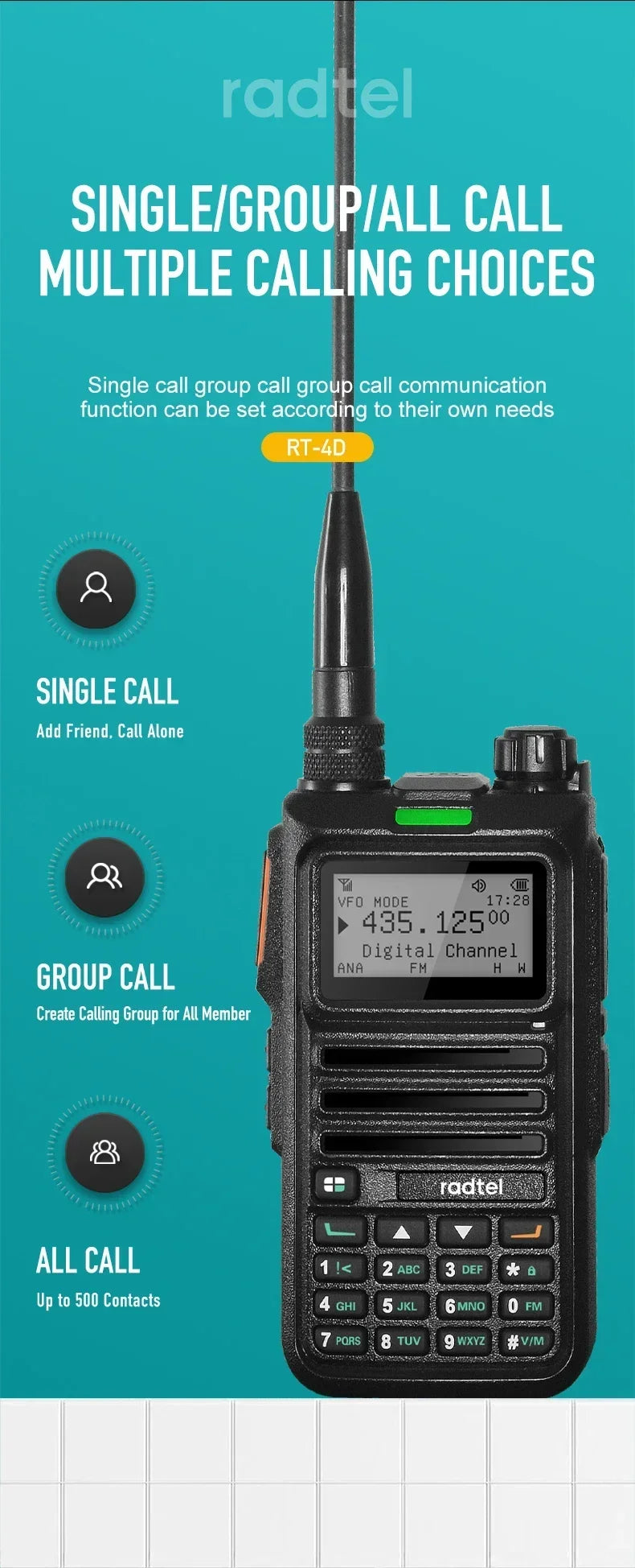 Radtel RT-4D DMR Radio Digital Walkie Talkie Dual Mode Analog Two Way Radio Dual Time Slot Ham Radio 1024 Channels