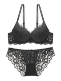 Romantic Lace Embroidery Lingerie Set - Soft & Breathable Push-Up Bra with Sheer Panty - Perfect Seductive Valentines Gift for Her - Womens Comfortable Intimate Wear