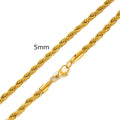 Ropes Long Necklace for Men Women, Stainless Steel Minimalist Twist Rope Chain Necklace,Punk Gold Silver Black Color 2 TO 5mm