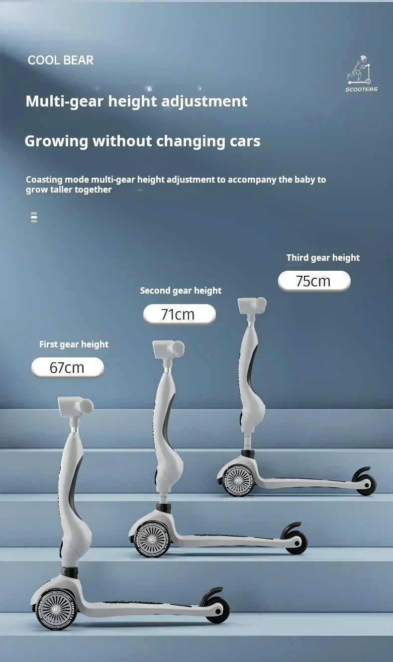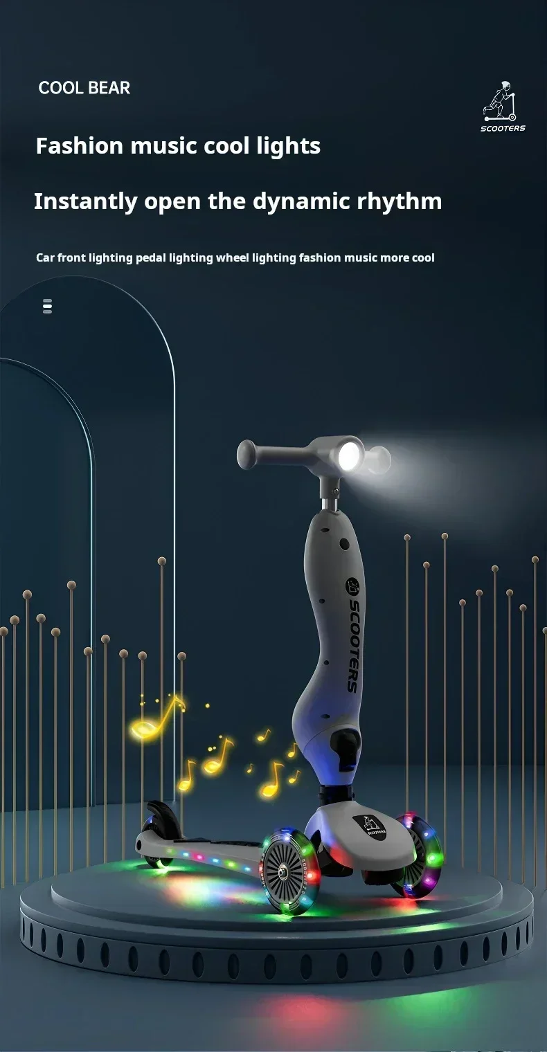 Scooter Voor Kinderen Vouwen 3 Wiel Skateboard Driewieler Baby Draagbare Kinderwagen Hoverboard Speelt Muziek Balans Multimodaal