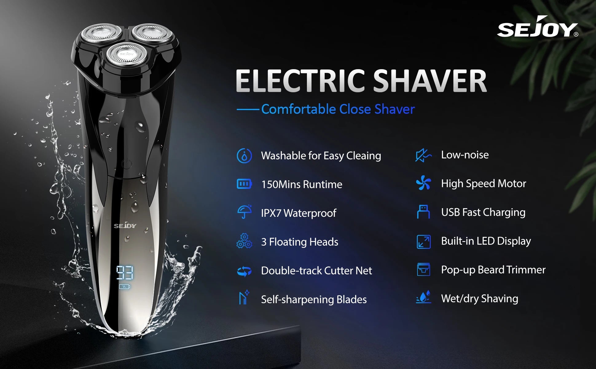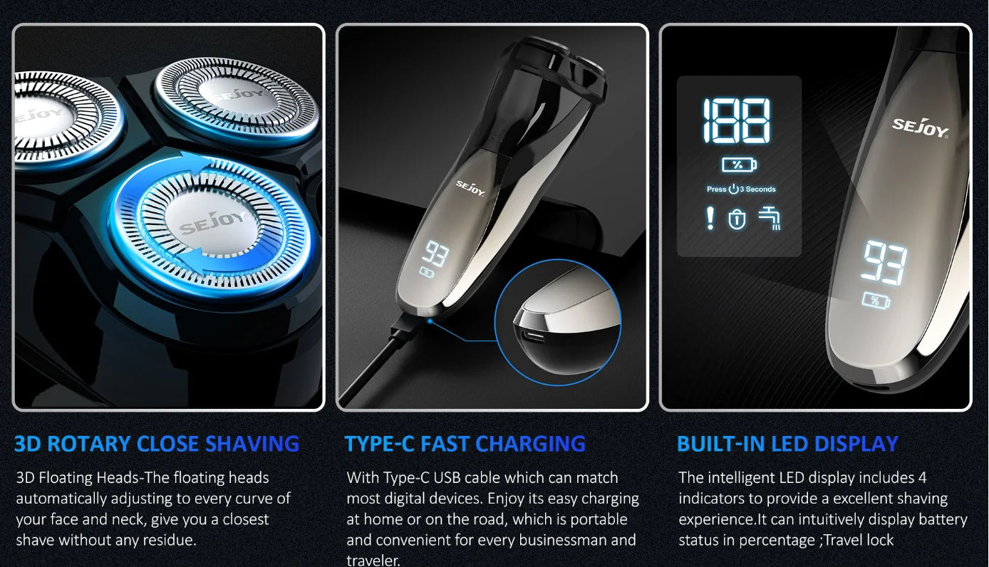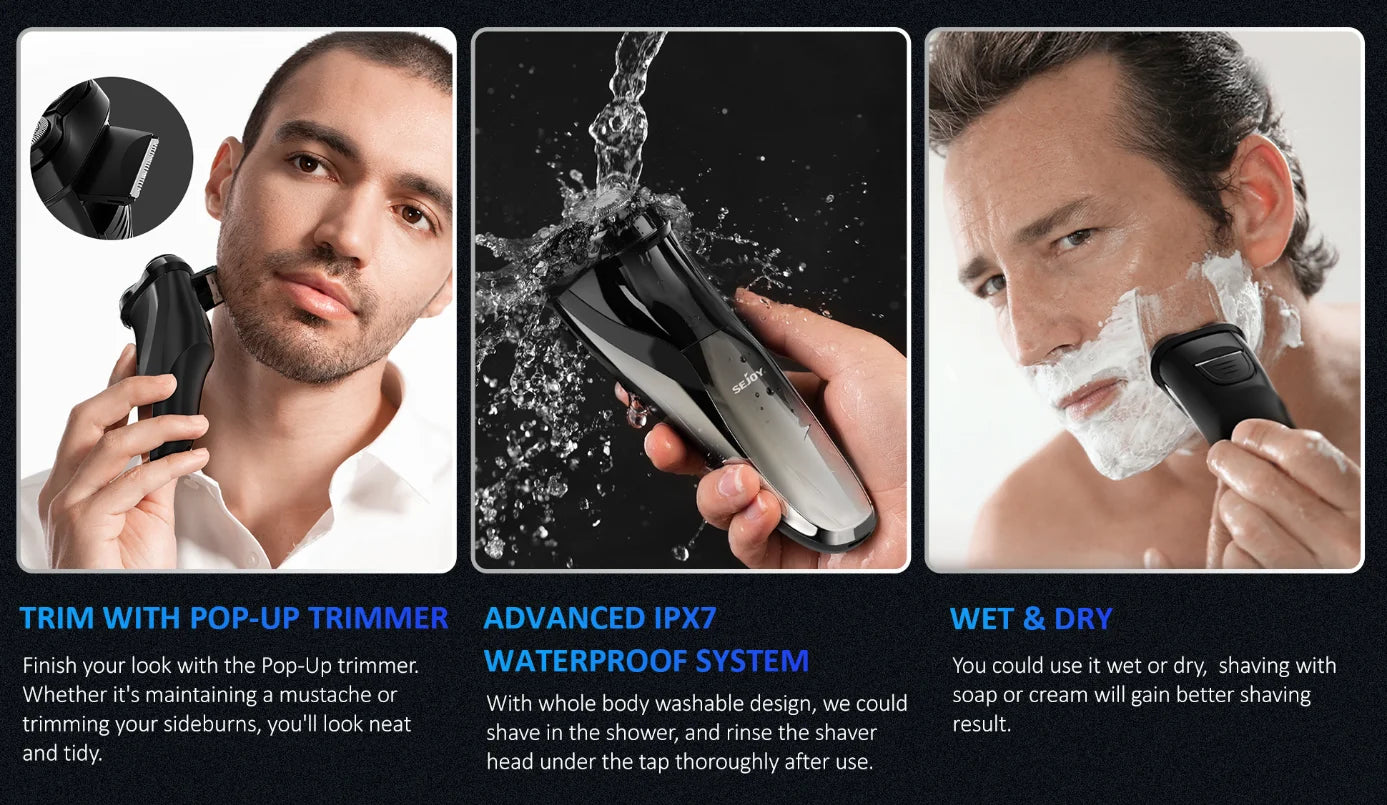 SEJOY 3D Electric Shaver Wet &Dry Rotary Shavers Pop-up Trimmer Waterproof Gifts