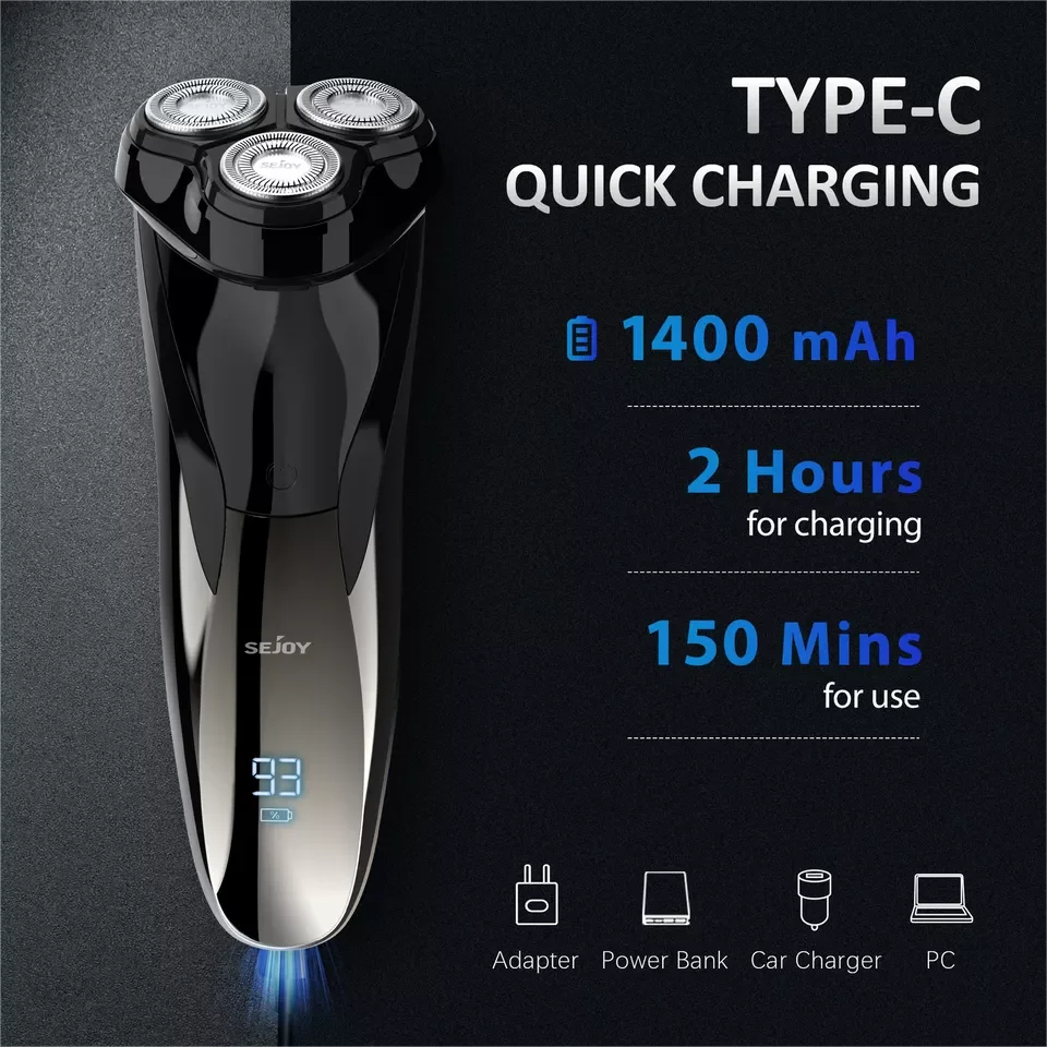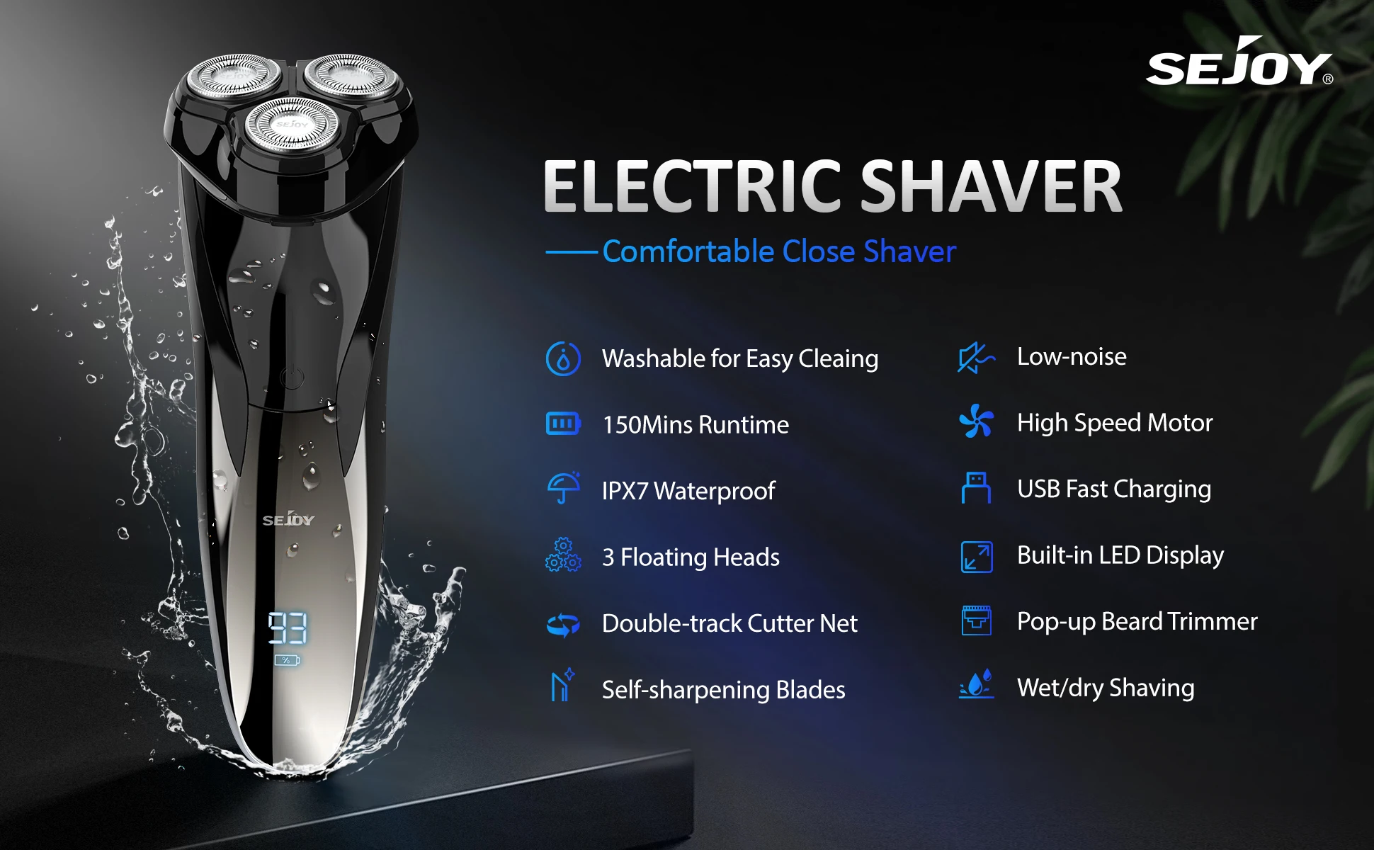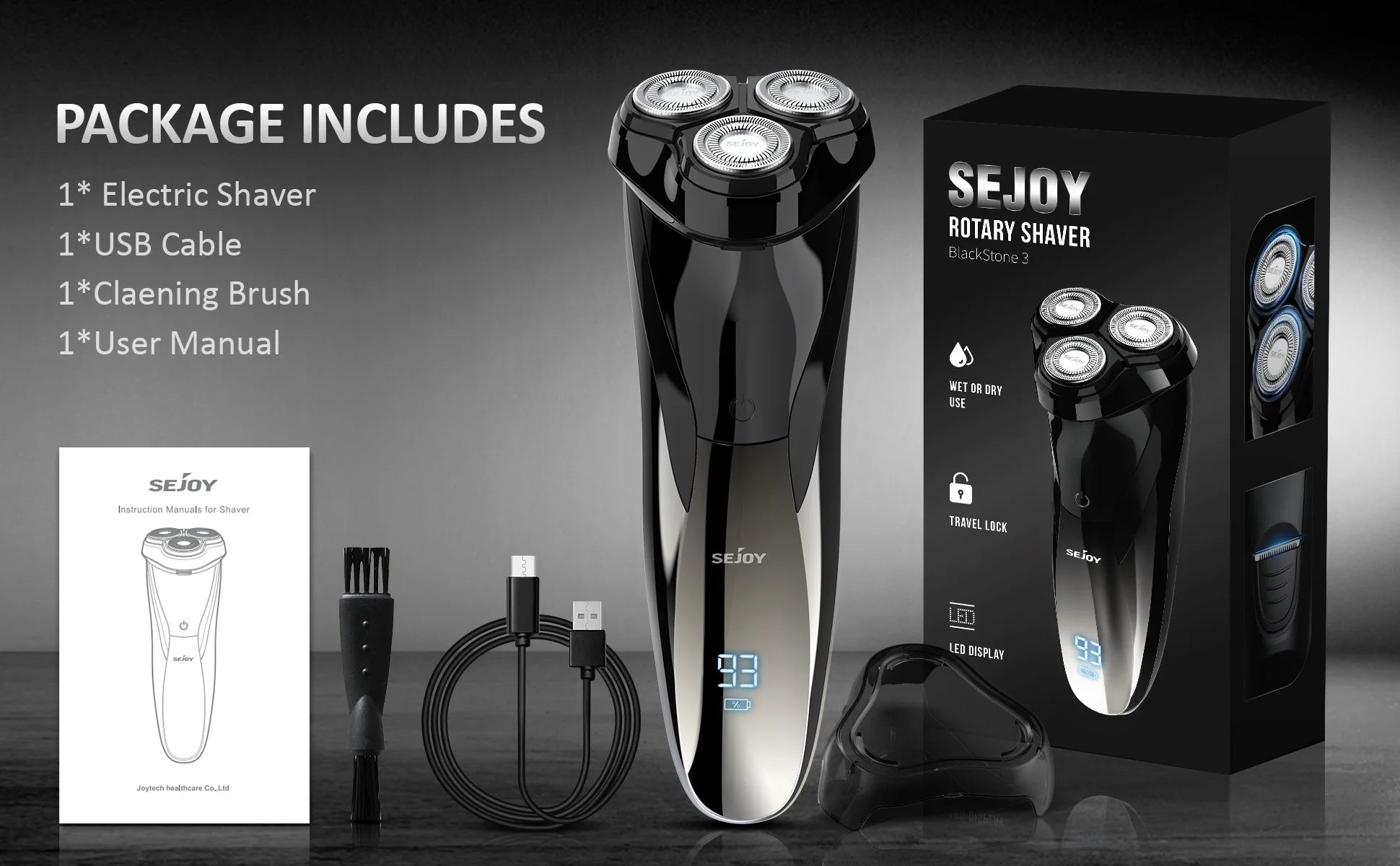 SEJOY 3D Electric Shaver Wet &Dry Rotary Shavers Pop-up Trimmer Waterproof Gifts