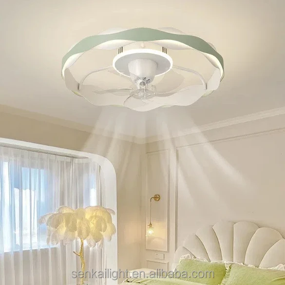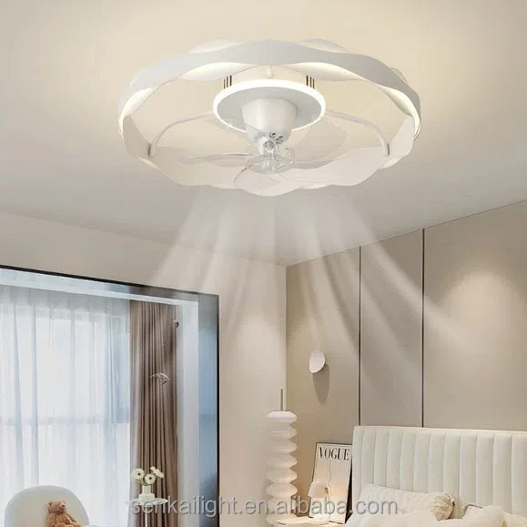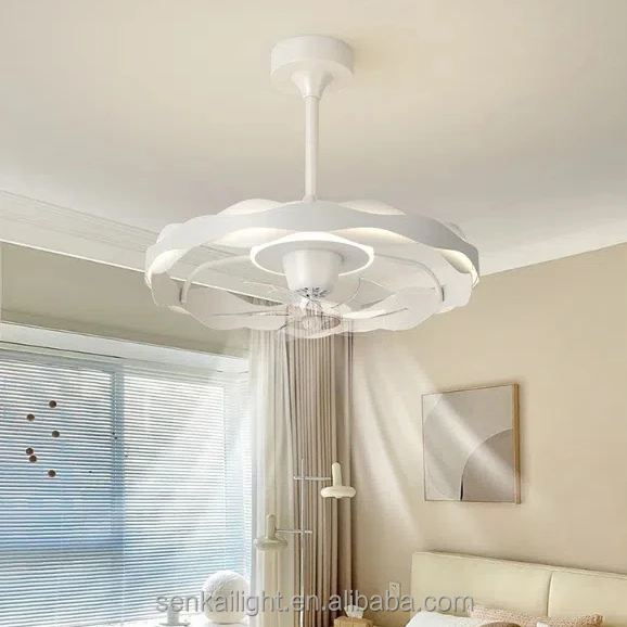 SENKAI Irregular Smart Ceiling Fan Blade Embedded Ceiling Light Large Wide-angle Transparent LED Light Metal Bedroom 97 Modern